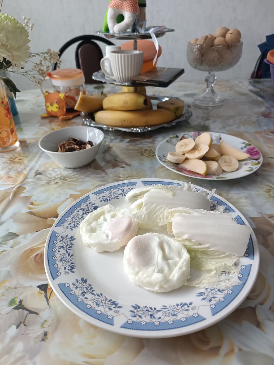Приветствую вас, дорогие мои читатели и гости канала! Как же я люблю субботы! Вся моя семья наслаждается субботним утром, пополняя свои организмы энергией, просто высыпается. И даже кот Снежок после попыток разбудить меня, отступает и терпеливо ждёт рядом, примостившись на кровати. Часов в 7 он довольно настойчиво требовал к себе внимания, заскочит на грудь, урчит, перебирает лапками: "Вставай, давай, засоня". К 9 часам я сказала себе: "Довольно, вставай! " Ощущение бодрости и готовности ко встрече выходного дня. Шагаем со Снежком на кухню. Сегодня я могу и подольше уделить ему внимание. Обновляю корм в мисочках, наливаю новую водичку. Сидим в тишине, радуемся!) Составив коту компанию, иду умываться. После водных процедур пью кружку тёплой воды. Поднимаюсь к своим на второй этаж. День выходной надо сделать подлиннее, поэтому бужу Андрея и Веруню. Веруне включила песню своего будильника, пусть она сегодня будит нашу девочку, а не я) Убедившись в том, что разбуженные окончательно