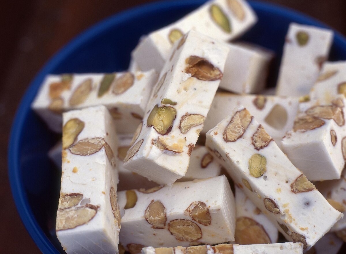 Газ (گز) – это знаменитая иранская нуга, родом из города Исфахан, который считается её кулинарной столицей. Этот десерт отличается мягкой, тянущейся текстурой и насыщенным вкусом меда, розовой воды и фисташек. Газ существует уже более 400 лет и берёт своё начало в эпоху династии Сефевидов. Изначально его готовили с добавлением сока редкого растения ангелика (Gaz-angebin), которое придавало десерту особую сладость и аромат. Со временем его стали заменять сахаром и мёдом, но традиционный рецепт сохранился. Обычно его едят с иранским чаем или черным кофе, а также подают как сладкий сувенир гостям. В Иране газ часто покупают в Исфахане, где его делают по старинным рецептам. В Иране газ считается не просто десертом, а символом гостеприимства – его часто преподносят в качестве подарка.