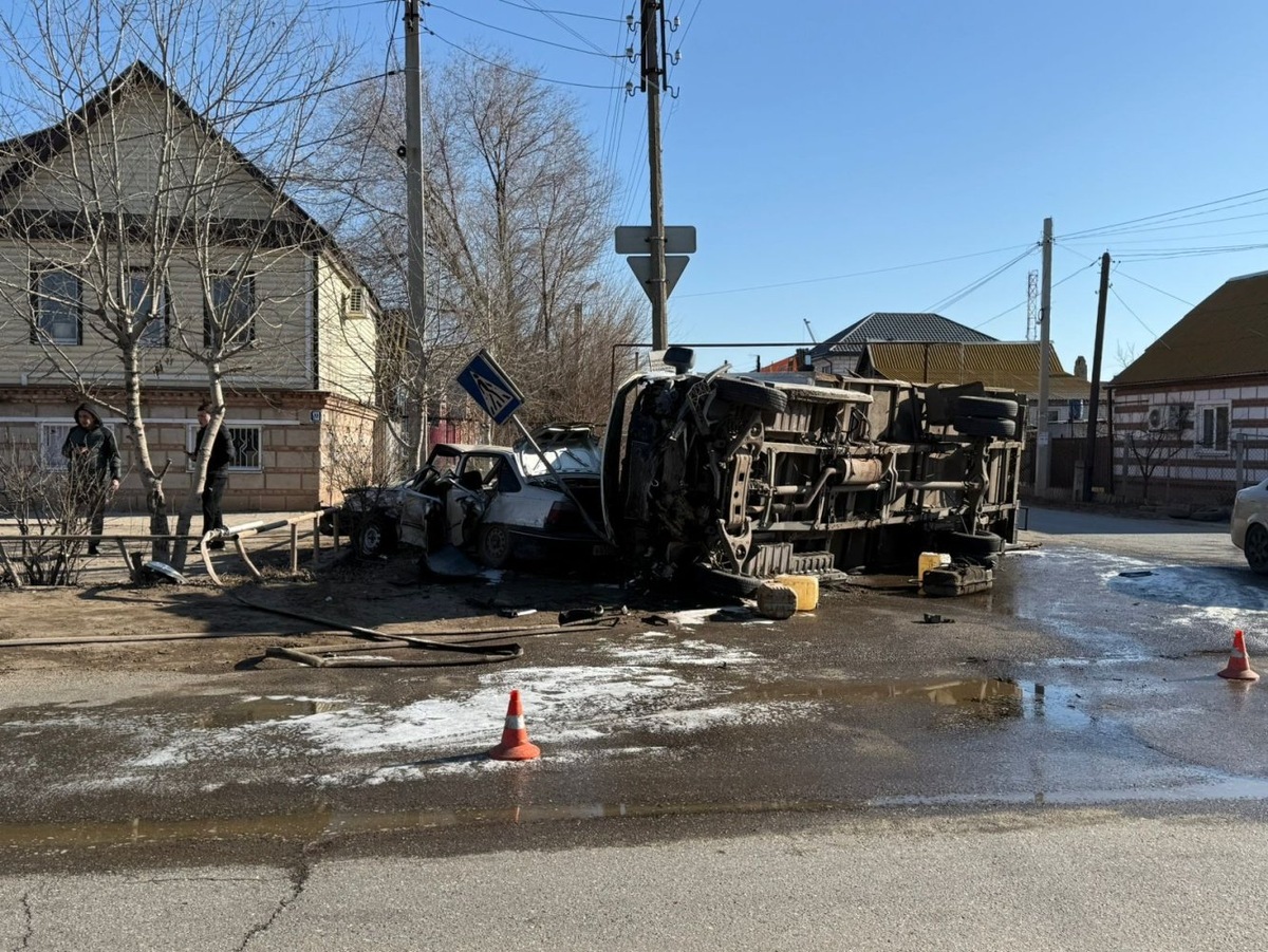 Грузовик смял легковушку в Астрахани, пострадали шестеро, включая маленьких детей