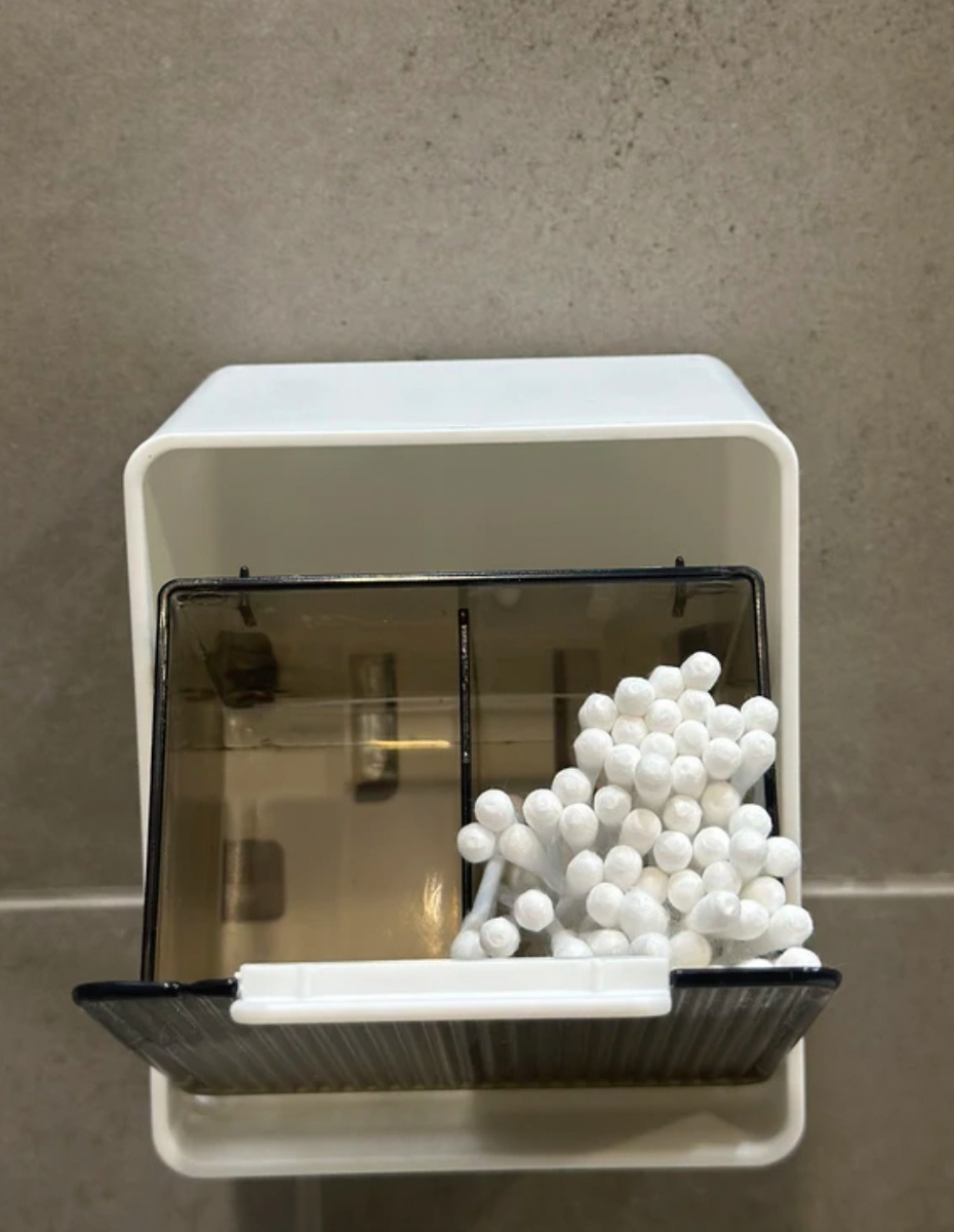 1. И наш список открывает органайзер для хранения ватных дисков и палочек. Его можно и просто поставить, и повесить на стену, крепится без сверления.