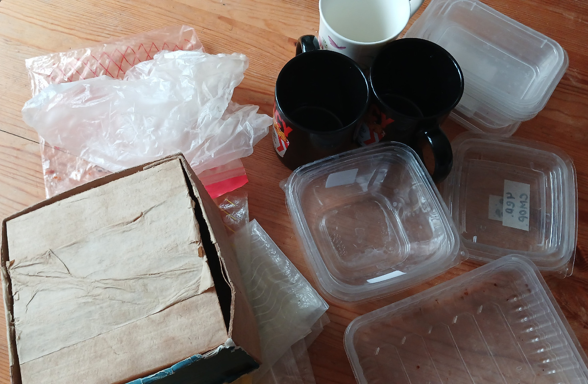 Освободившиеся контейнеры от заморозки, пакеты оттуда же - всякий хлам.