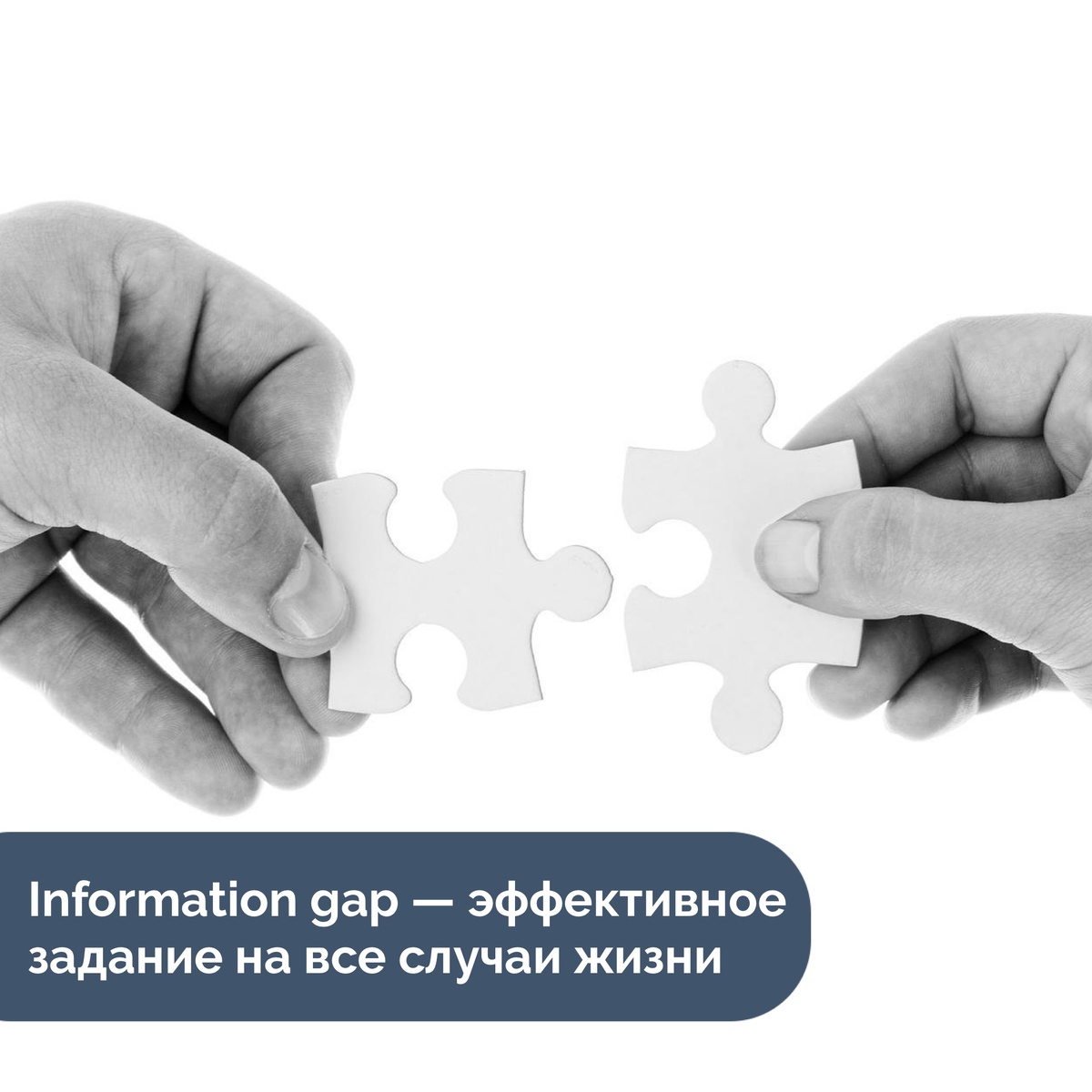 Information gap, т.е. информационный пробел — это название очень популярного в КМ типа заданий. Одновременно это — самая частая (хотя не единственная) причина коммуникации между людьми в реальной жизни. Как мы знаем, КМ строит обучение вокруг максимально «живых» ситуаций, поэтому неудивительно, что она подразумевает регулярное применение упражнений такого типа. Information gap образуется, когда один знает то, чего знают другие. У других возникает внутренняя мотивация получить информацию, и этот стимул чуть более сильный, чем просто желание заработать хорошую оценку (или страх заработать плохую, что с т.зр. мотивации довольно вредно). Information gap работает как в парной работе, так и в групповой; как для письменных заданий, так и для устных; и конечно, подходит для учеников любого возраста. Все, что требует от учителя — снабдить часть группы информацией и лишить ее другую часть. Информация при этом может идти от учебника, от учителя или даже от самих учеников (самый коммуникативный ва
