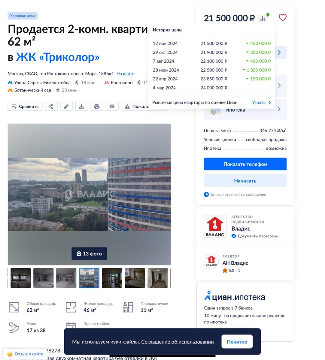 🤔 Еще раз о финансах и формальной логике. Недвижимость всегда привожу в пример, так как, во-первых, сам имею высокую экспертность в ней, а во-вторых, это понятно абсолютно всем! Мониторю почти всегда. Да и прикупаю периодически, если предложение интересное. Так вот, еще в октябре 2023 года наметился большой спад в этом секторе. Никакой магии и дара предвидения, небольшая формальная логика. Ставка растет, программы будут убирать. 🤷♂️ Простыми словами - бесплатных денег нет! А это был основной драйвер последних лет. Классический пузырь. Американская модель. И в конце 2023 начали судорожно брать канадскую модель. Ужесточение по всем направлениям. 📺 Заодно и падение застройщиков в акциях спрогнозировали. Будет желание посмотрите этот ролик. И вот, текущий момент. Квартиры в комплексе, который мы брали для анализа. Хороший бизнес-класс. Недалеко от метро. Фитнесы, рестораны, подземные парковки, охрана и т.д. Не премиум, но крепкий бизнес-класс. Конкретная квартира, мы ее смотрели в окт