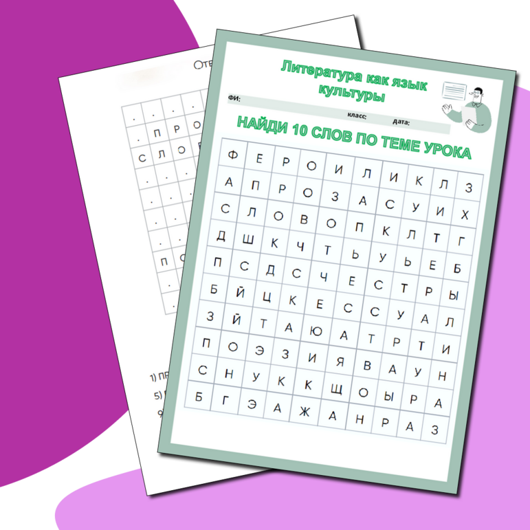 Филворд по основам духовно-нравственной культуры народов России для 5 класса на тему «Литература как язык культуры» представляет собой увлекательную и познавательную игру, созданную в соответствии с требованиями Федерального государственного образовательного стандарта. В этой игре используются определения из области литературы и культуры, которые нужно найти и использовать для составления предложений. Это поможет детям лучше понять, как литература отражает культуру и историю народа, а также развить свои языковые навыки. В филворде представлено 10 определений, слова и их расположение указаны в ответах. Ссылка для скачивания: