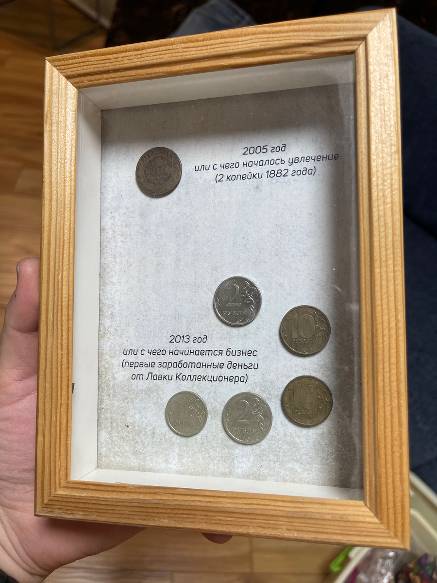 Мое увлечение коллекционированием началось в 2005 году на Сахалине, когда мне подарили царскую монету 1882 года — две копейки. Этот подарок сделал мой дядя, Дербенев Евгений, человек с неиссякаемой энергией. Когда я впервые увидел эту монету, она меня поразила. Я не знаю, почему именно эта монета зацепила меня, но она стала отправной точкой для моего увлечения. Хочу отметить, что монета ничего не стоит, но для меня она самая ценная. С тех пор я начал погружаться в мир нумизматики. Я читал книги, искал информацию, спрашивал знакомых о том, какие у них есть монеты. Каждая новая находка и каждая прочитанная страница только подогревали мой интерес. В 2013 году я открыл свою первую небольшую антикварную лавочку. Это был важный шаг для меня. Первая покупка у меня была - советская монета за 25 рублей. Эти деньги стали для меня — символом начала нового этапа в жизни. Я сохранил эти монеты и теперь они в рамке, напоминая мне о том, как все начиналось. Я очень благодарен своему дяде. Он