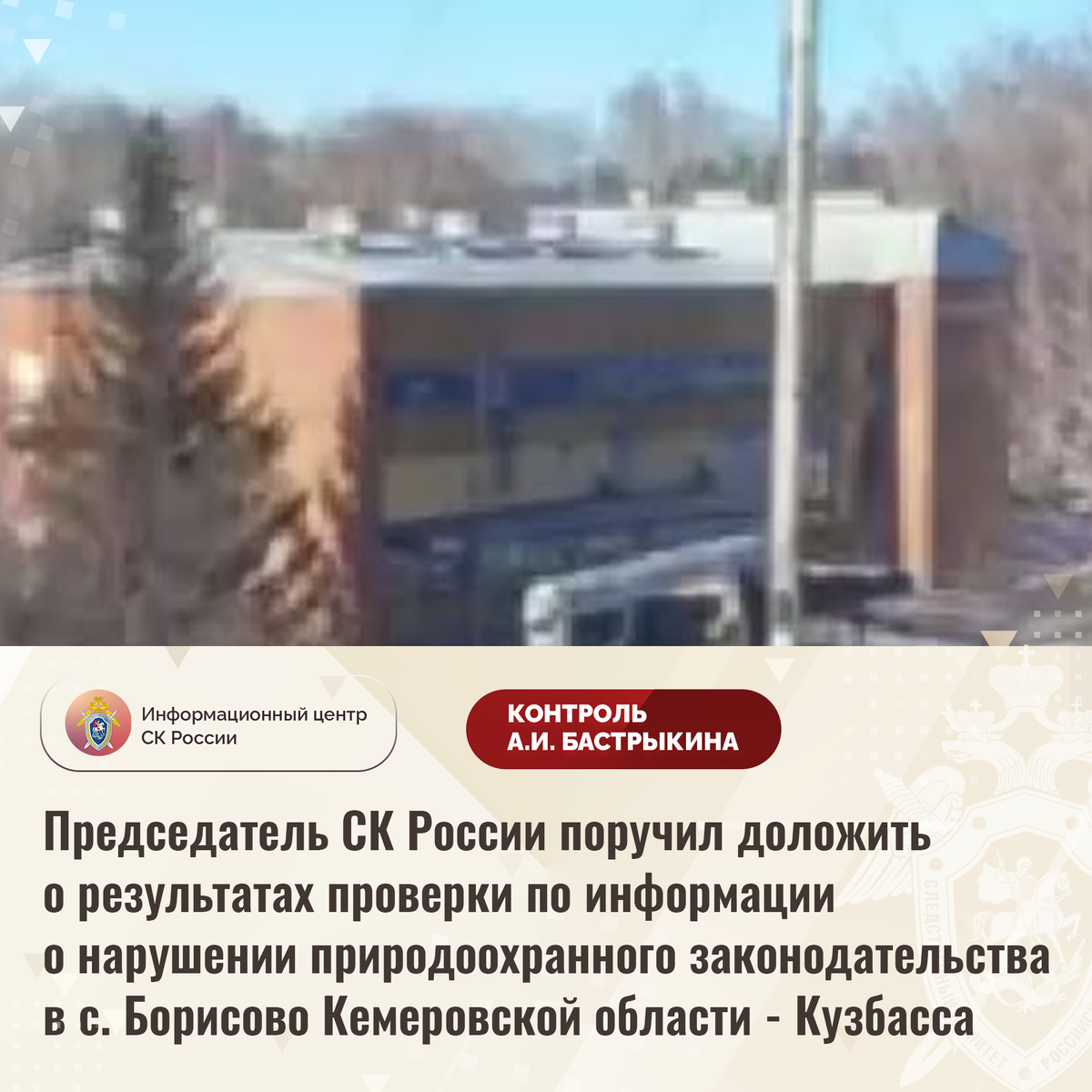 Председатель СК России поручил доложить о результатах проверки по информации о нарушении природоохранного законодательства в с. Борисово Кемеровской области - Кузбасса