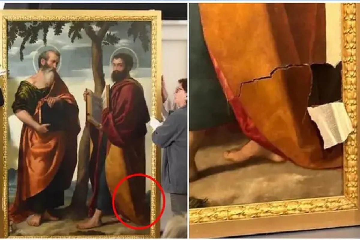Посетительница музея в итальянском городе Брешия случайно испортила картину, которая относится к эпохе возрождения. Полотно датируется XVI веком. Женщина оступилась и, падая, инстинктивно оперлась о холст, и порвала полотно. «… Такое может случиться», – глава Фонда музеев Брешии Стефано Караджов. По его словам, выставка сейчас очень популярна. Он также добавил, что посетительница экспозиции не пострадала. Чего не скажешь о работе местного художника Моретто, сообщает издание Giornale di Brescia. У картины, написанной им в 1512– 1524 годах, оказался порван правый нижний угол. Поврежденный экспонат был незамедлительно отправлен на реставрацию. По предварительным данным, нелепая случайность причинила ущерба на несколько тысяч евро. Но Стефано Караджов заверил, что ничего страшного не случилось. Картина будет полностью восстановлена. Примечательно, что к женщине, которая стала невольной виновницей живописного инцидента, у музея нет никаких претензий. Ей не придется возмещать, причиненный ущ