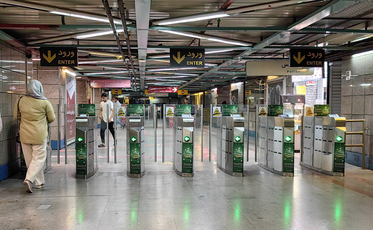 Пару раз попадали в метро в час пик. Однажды вообще пришлось пропустить два поезда, потому что в них просто невозможно было войти. В итоге, решили перейти на другую ветку и ехать в объезд. Сеть метрополитена в Тегеране довольно разветвленная. Некоторые станции очень глубокие – на станции Таджриш четыре больших пролета эскалатора. В поездах есть отдельные вагоны только для женщин. В час пик в таких вагонах намного комфортнее, чем в общих. Когда поезда не сильно загружены, то в общих вагонах женщин много. В одиночку в общих вагонах женщины тоже спокойно ездят. А вот в женские вагоны мужчинам заходить нельзя. Но все равно в женских вагонах часто ездят парочками девушки с парнями. На некоторых станциях видели дежурных, которые выгоняли парней из женских вагонов. Вот вам и "дискриминация" женщин - женщинам в общий вагон можно, а мужчинам в женский вагон нельзя! Все предусмотрено именно для удобства женщин!