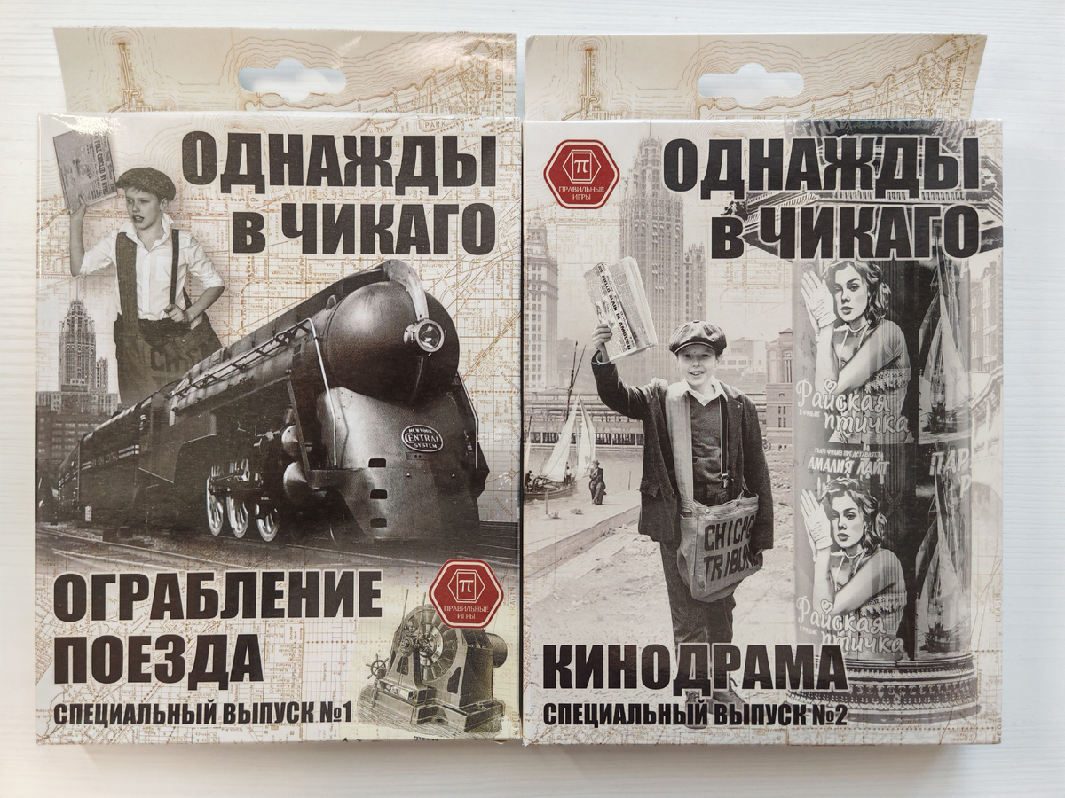 Издательство: Правильные игры Кол-во игроков: 1+ Возраст: 18+ Время: 100+ мин Состав игры: Конверты с ответами, Конверты с уликами, газетные вырезки, книги дел. Жанр: детектив Два дополнения к игре "Однажды в Чикаго", в каждом своя книга с Делом, свои улики и свои конверты с ответами. Добавилась новая механика. Теперь важно в какое время мы приехали на адрес, у многих заведений свой режим работы. К Делу №6 газету прилагать не стали и в книжке допущено несколько опечаток в названии адреса. Оба дела на уровне базовой игры. "Кинодрама" показалась посложнее "Ограбления поезда".