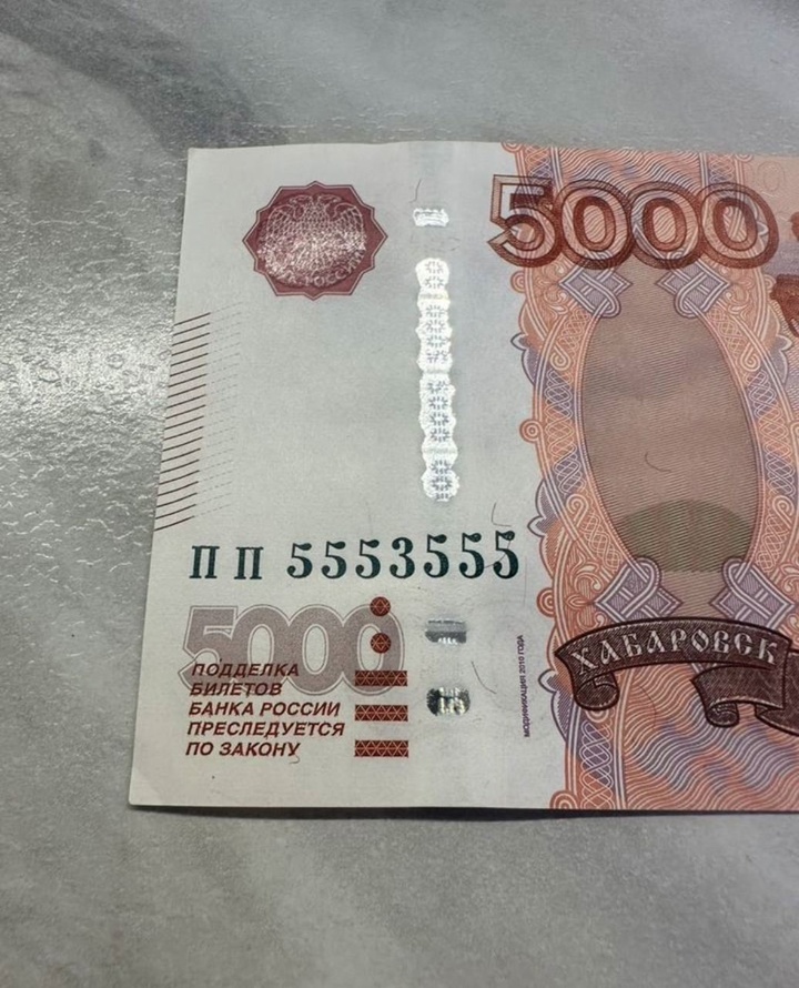 В Петербурге появилось весьма необычное объявление, которое заставило многих удивленно поднять брови. Местная жительница выставила на продажу пятитысячную купюру 1997 года выпуска. Казалось бы, ничего особенного, но цена этой бумажки впечатляет – 5 553 555 рублей! Что же в ней такого уникального?