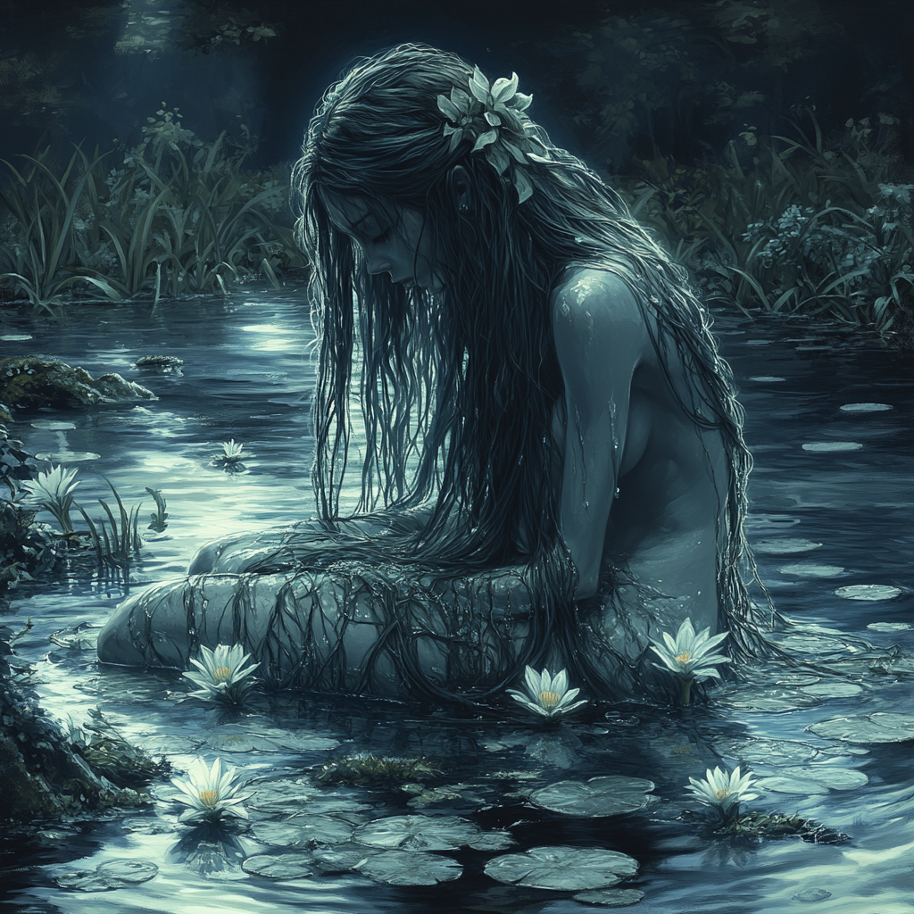 С давних времён люди боялись русалок, ведь вода скрывает больше, чем показывает. Они подкрадывались в предрассветной мгле, вытягивая из людей их тайные желания, заставляя забыться под зовом чарующего смеха. Их белая кожа, холодная, как лунный свет, и глаза — глубокие, как сама тьма, обещают либо вечную любовь, либо бесконечный страх. Они вечные странницы чужих миров — обречённые на вечный поиск, на вечное одиночество.