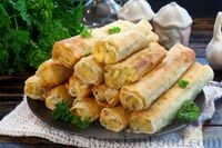 Трубочки из лаваша с картошкой и сыром — простая и вкусная закуска, завтрак или дополнение к первым и вторым блюдам. Твёрдый сыр придаёт приятную сливочную нотку начинке, а чеснок и укроп — замечательный аромат. Румяная хрустящая корочка лаваша и аппетитная нежная начинка из картофельного пюре и расплавленного сыра привычны на вкус, а форма исполнения разнообразит подачу. Продукты Картофель - 450 г Лаваш тонкий - 200 г (2 шт.) Сыр твёрдый - 150 г Укроп свежий - 15 г Чеснок - 1 зубчик Лавровый лист - 1 шт. Масло растительное - 30-45 мл (2-3 ст. ложки) Соль - по вкусу Перец чёрный молотый - по вкусу Подготавливаем необходимые продукты. Картофель очищаем, вымываем, нарезаем средними кусочками. Выкладываем в кастрюлю, заливаем небольшим количеством воды, чтобы она только покрыла картофель, добавляем лавровый лист. Доводим воду до кипения, варим картофель на небольшом огне около 20 минут, до мягкости. После этого воду сливаем, а картофель разминаем в пюре. Пюре оставляем немного остыть. У