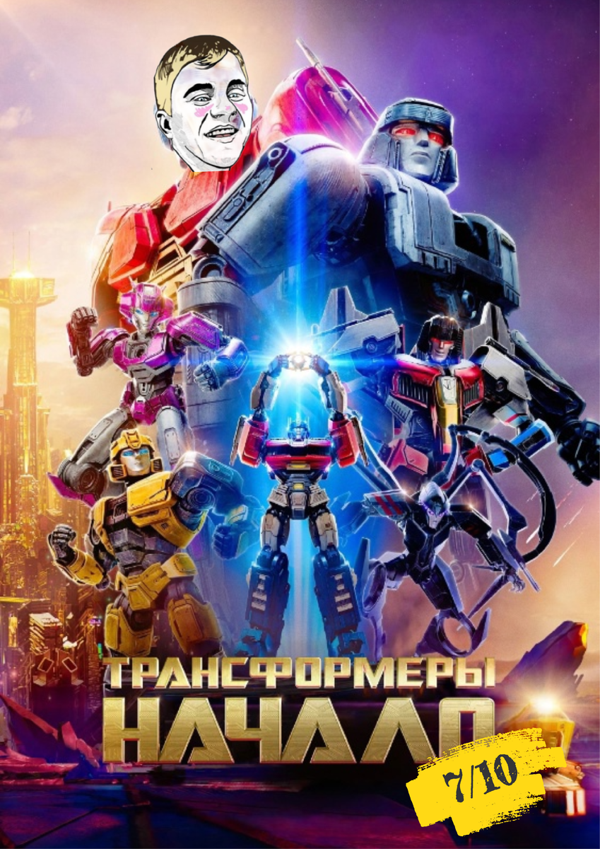 Трансформеры: Начало🤖🤖 Наконец-то киноделы догадались как преподнести историю, о машинах превращающихся в роботов. Я уже писал в обзоре на последнею часть (https://dzen.ru/a/ZL8yB4h0En-kc5-w), что куда интересней увидеть приквел показывающий знакомство известных лидеров до печальных событий и другое место действия, а не Землю. Никаких людей, создающих лишний шум на фоне, а только трансформеры и их история. Главные персонажи заядлые друзья, работающие в шахтах и мечтающие о величии. Персонажи отличаются от тех которых мы видели в фильмах. Оптимус (Орион Пакс) задорный и вписывается во всякие авантюры, а Мегатрон (Д-16) наоборот осторожный и более продуманный. На протяжении всего сюжета нам будут показывать устройства мира, знакомых персонажей по фильмам, особенно понравился персонаж Бамблби который наконец говорит и говорит много, он в этом фильме отвечает за юмор вместе с Оптимусом. Визуально мультфильм выгладит красочно, дизайн персонажей так же приятный и динамичные моменты интере
