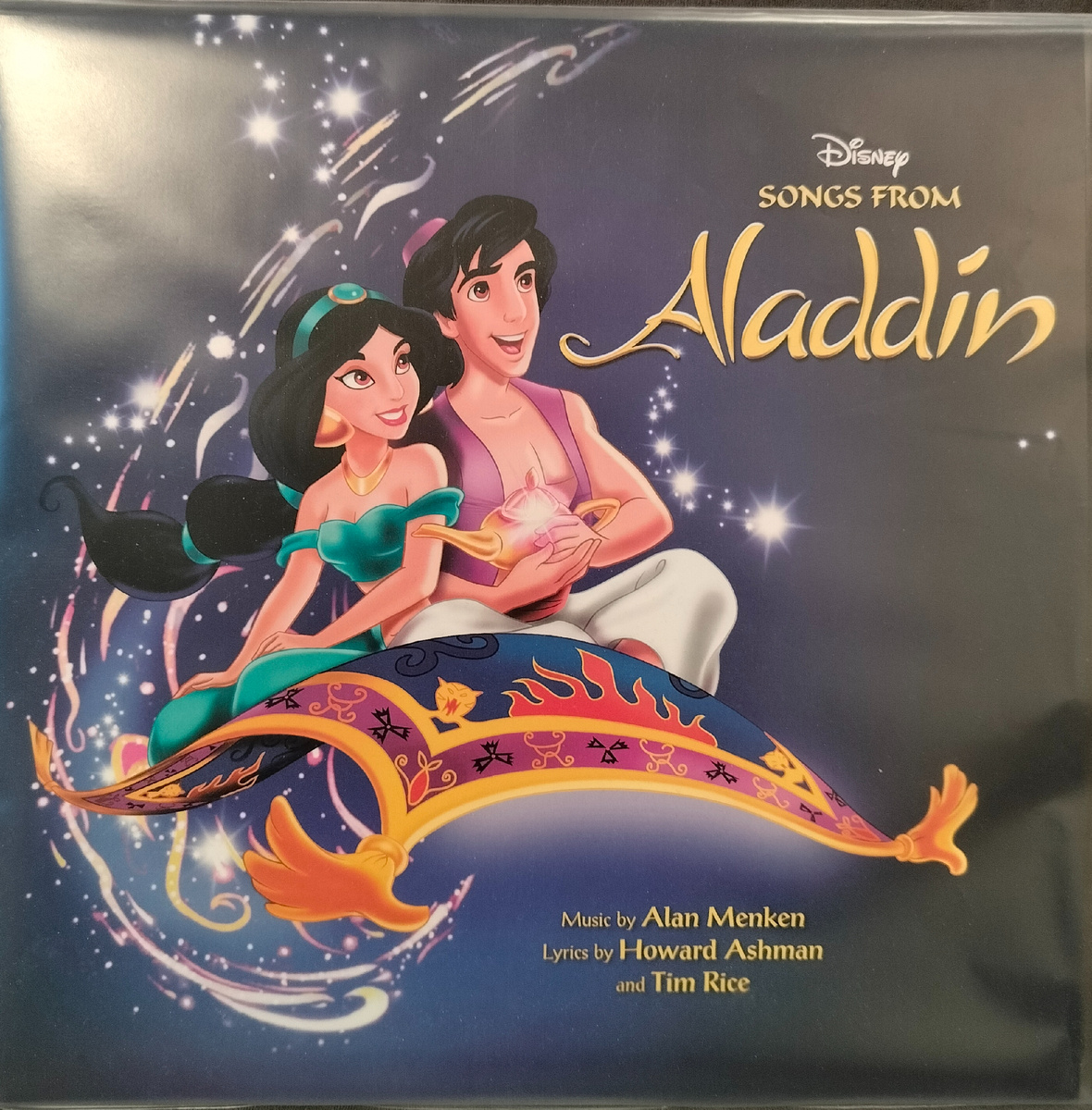 Доброго времени суток, давненько я не писал о саундтреках выпущенных на виниле. Что же, исправляюсь. Кто не знает этот замечательный Диснеевский мультфильм. Даже те кто не смотрел уж точно знают песню "Арабская нооочь! !! " Сегодня я поведаю о создании саундтрека и коллекционном издании его на виниле. В 2023 году фирма Дисней выпустила целую пачку коллекционных винилов с саундтреками к своему столетию. И я начал гоняться за ними как умалишенный, конечно я не стал скупать все, ибо тратить деньги на то, что не нравится глупо, но несколько пластов я приобрёл в коллекцию, труднее всего было достать именно Аладдина, меня задинамили несколько продавцов, в итоге перекуп продал мне его за цену в два раза больше рыночной. Но все же поговорим о песнях, альбом открывает конечно же "Арабская ночь" ее исполняет странствующий торговец, после песни идёт его монолог, в котором он пытается впарить зрителю/слушателю всякий хлам. Примечательно, что по изначальной задумке авторов этот торговец должен бы