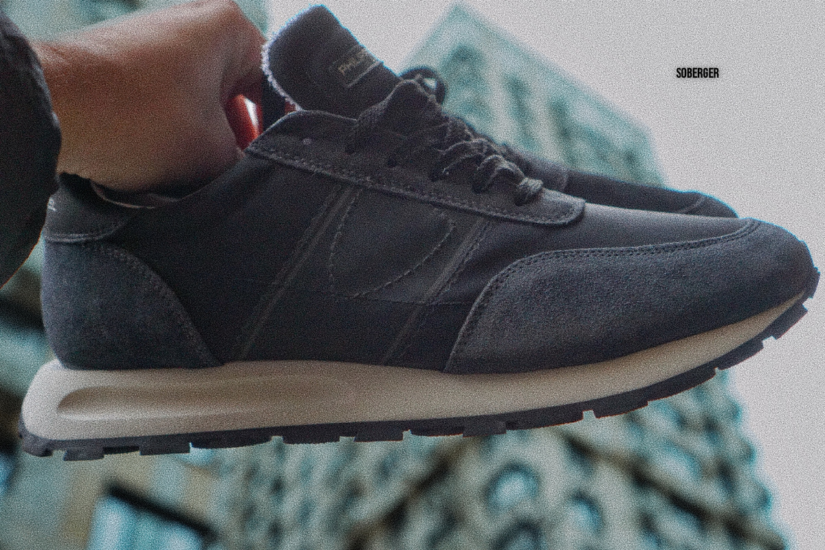 Мои постоянные читатели знают, что я не очень жалую черные кроссовки, однако темные кроссовки я ношу довольно часто, особенно в осенне-зимний сезон. Тут главное подобрать какой-нибудь не слишком затертый оттенок типа насыщенного синего, темно-серого, графитового или какую-нибудь интересную интерпретацию этих цветов, например, выцветшие оттенки, которые заставляют кроссовки выглядеть совершенно по-другому. Ну и в идеале подразбавить это все белой подошвой. Все это я нашел в модели Philippe Model Tour Low Man в цвете Vintage Noir, что переводится как винтажный черный, однако лично мне цвет кажется темно-серым с легким налетом темно-синего. По крайней мере у замши, а вот ткань кроссовок и кожаные вставки действительно черные. Смотрится это сочетание цветов просто шикарно, так что рассказываю более подробно про модель итальянского бренда, тем более, что она еще оказалась и очень комфортной. Смотрим. Не люблю я коробки, у которых крышка не снимается полностью, но здесь качество картона и пр