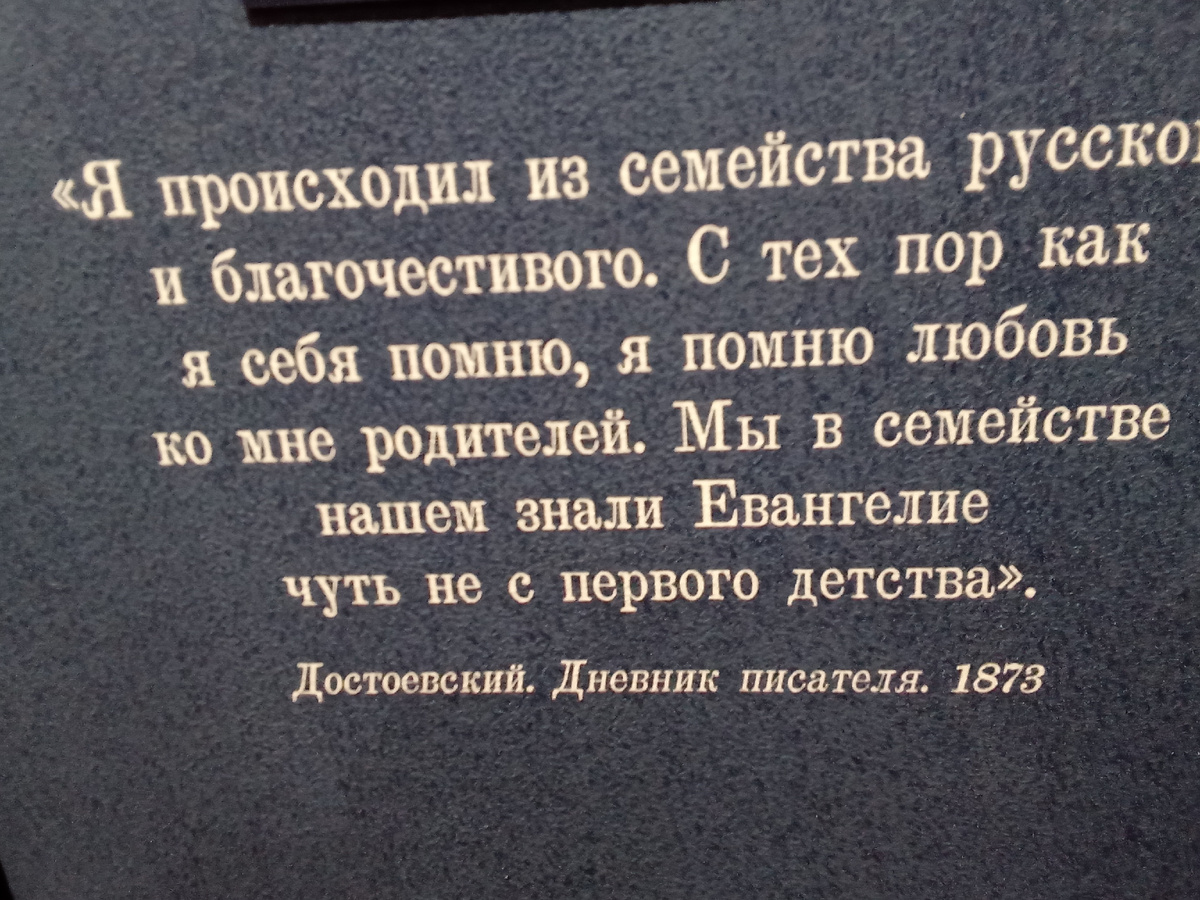 Сперва посмотрели музей-квартиру Достоевского в Кузнечном переулке, 9, а потом отправились посмотреть еще два зала, посвященные Достоевскому Учебники, по которым учился Федор Михайлович Посетителей в музее много. Я-то думала, что мы с мужем будем там все осматривать в одиночестве Экспозиция представлена по разделам и по циклам жизни и творчества писателя Второй супруге писателя, Анне Григорьевне Сниткиной, которая была младше его на 25 лет, отведено особое место на стендах экспозиции Роман "Братья Карамазовы" посвящен супруге писателя и закончен в написании за два месяца до смерти Вид из окна на Владимирский собор и на Кузнечный переулок Достоевский умер 28 января (9 февраля по новому стилю)1881 года в возрасте 59 лет. Диагноз - туберкулез легких и хронический бронхит Похоронен на Тихвинском кладбище Александро-Невской Лавры в Петербурге Во втором зале тоже очень интересная экспозиция, посвященная ПУШКИНСКИМ И ДОСТОЕВСКИМ МЕСТАМ В ПЕТЕРБУРГЕ Выставка очень понравилась. Немного информ