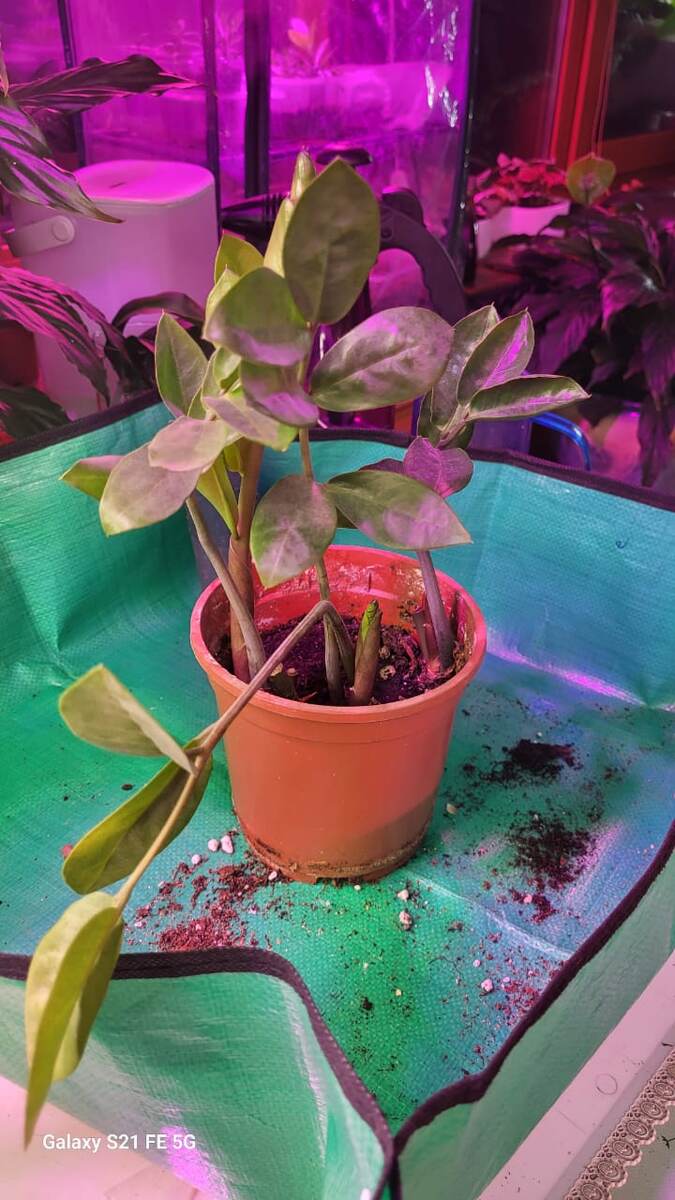 Доброго времени суток дорогие мои подписчики и гости моего канала! И опять замиокулькас. И опять пересадка. Вот такой цветок попал ко мне на пересадку. Каждый раз не перестаю удивляться живучести этого цветка. Несколько лет цветок не пересаживался, земля не менялась, а он растет и листья новые выдает. Цветок был пересушен и был залит. Видно по корням. Есть совсем сухие, а есть гнилые. Но наш замиокулькас так хочет жить, что не смотря ни на что пытается расти и радовать хозяйку новыми листьями. Я не буду долго описывать, какой я делала грунт. Это я писала много раз. Не забыла добавить древесный уголь. Горшок взяла по диаметру примерно такой же, так как корни не наросли и по объему корней подошел горшок примерно такого же диаметра. Грунт весь поменяла. Не буду рассказывать, что на дно горшка положила керамзит, чтобы излишки воды могли вытекать из горшка. Вот так у меня получилось! Пусть растет наш стойкий зеленый солдатик и продолжает дальше радовать свою хозяйку.