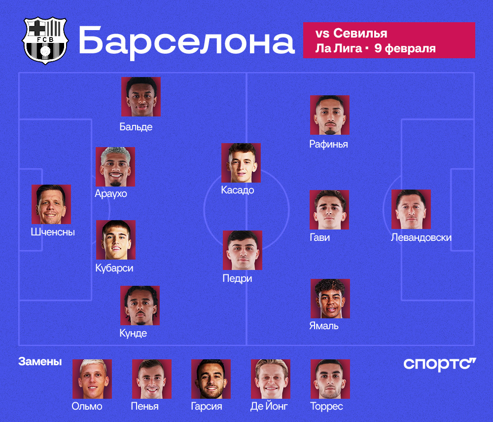 Левандовски возвращается. Возможный стартовый состав «Барселоны» на матч против «Севильи»