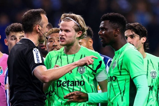 На 70-й минуте Джовани Кенда слева ворвался в штрафную площадь "Порту", оказался практически с глазу на глаз с Диогу Коштой, но переиграть в ближнем бою голкипера сборной Португалии не получилось. Главный арбитр Жуан Пиньейру к основному времени поединка добавил пять минут. На третьей из них Виктор Дьекереш справа вошёл в штрафную "драконов" и нанёс плотный удар по воротам, но Диогу Кошта справился. В ответ – "Порту" забил ответный гол и ушёл от поражения. Самуэль Омородион сбросил мяч на Дэнни Лоудера, а вышедший на замену англичанин с линии вратарской отправился игровой снаряд в сетку – 1:1! Футболисты "Спортинга" тут же бросились в атаку и заработали угловой на левом фланге, в результате которого произошла потасовка. В итоге "львы" завершали поединок аж вдевятером, так как красные карточки получили Матеус Рейс и Усман Диоманде, а у "Порту" Фабиу Виейра и Самуэль Омородион отделались "горчичниками". Финальный свисток так и зафиксировал ничью 1:1. У "Спортинга" 51 балл и первое место в турнирной таблице, а у "Порту" 43 очка и третья строчка.