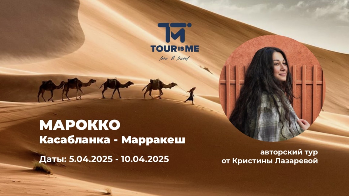 Марокко... Звучит как сказка из "Тысячи и одной ночи": песчаные дюны, затерянные оазисы, древние города, окутанные тайной, ароматы специй и пряностей, завораживающие звуки восточного базара... Но это лишь верхушка айсберга. Представьте себе Марокко за гранью глянцевых открыток, Марокко, которое открывается лишь тем, кто готов погрузиться в его глубины. Мы приглашаем вас в авторский тур, который подарит вам незабываемые впечатления и откроет Марокко с совершенно новой стороны. Забудьте о стандартных туристических маршрутах и толпах туристов! Этот тур – это экспедиция в сердце аутентичной культуры, в мир, где время течет по-другому, где традиции бережно хранятся, а гостеприимство пронизывает всё. В нашем уникальном маршруте вы увидите: ✨ Касабланку и мечеть Хасана II ✨ Марракеш – сады Мажореля, музей Yves Saint Laurent, площадь Джемаа-эль-Фна ✨ Рассвет на воздушном шаре 🌅 ✨ Кулинарный мастер-класс в Марокканской риаде🍲 ✨ Прогулка на квадроциклах в пустыне и чаепитие с берберами Прогр