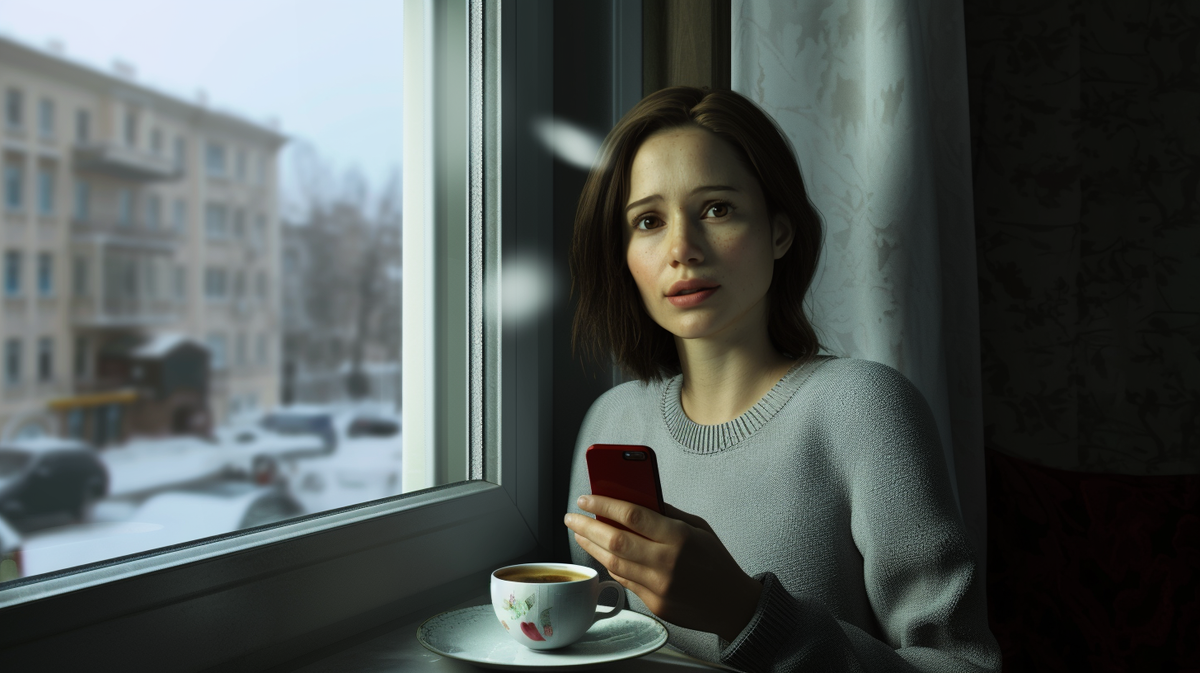 Холодный зимний вечер окутал Москву снежной пеленой. Алина стояла у окна своей квартиры, прижавшись лбом к ледяному стеклу. На подоконнике стоял остывший чай, а в руке она всё ещё сжимала телефон – на экране светился пропущенный вызов от Максима.
