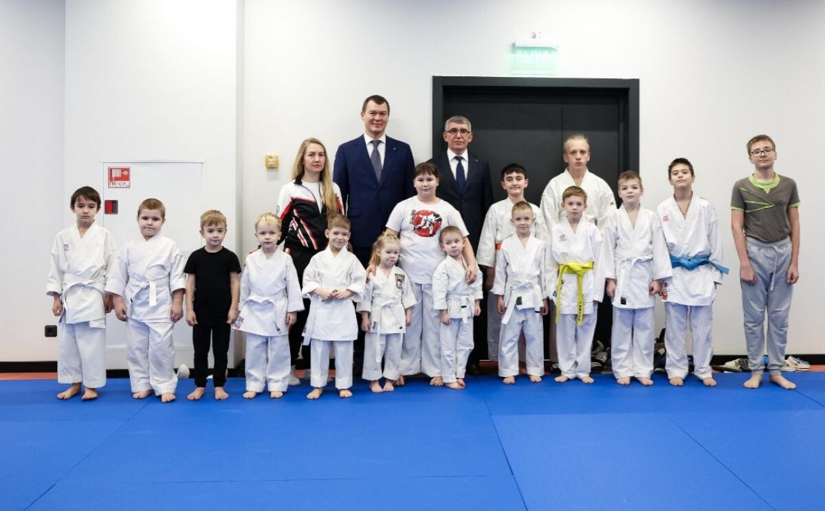 Министр спорта России Михаил Дегтярёв вместе с Дмитрием Миляевым посетили тульскую Академию каратэ
