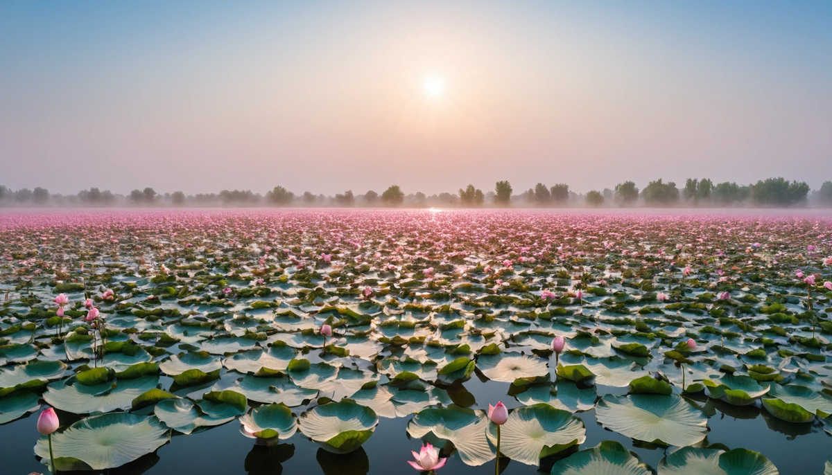 - Цветение длится с конца июля по конец августа, и пик его приходится на середину августа — это лучшее время для поездки. Когда ты увидишь эти поля в разгар цветения, они будут похожи на огромные живописные ковры из розовых лепестков, расходящихся в бескрайние просторы водной глади.
