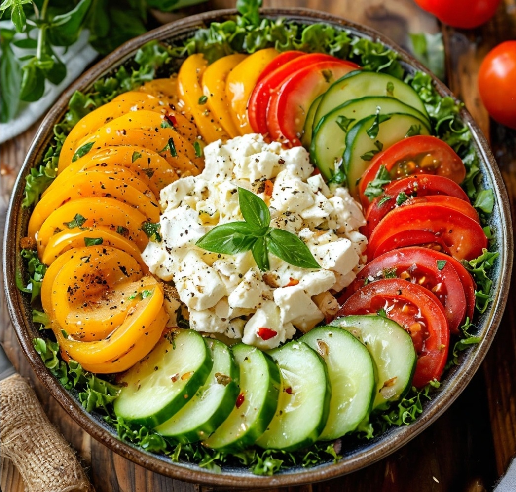 Ингредиенты: - 1 средний помидор - 2 огурца - 50 грамм сыра (например, моцарелла или фета) - несколько листьев салата (романо, айсберг, лолло россо) - оливковое масло - соль и перец по вкусу Приготовление: 1. Нарежьте помидоры и огурцы на кусочки одинакового размера. 2. Нарежьте сыр на мелкие кубики. 3. Выложите листья салата на тарелку и добавьте нарезанные овощи и сыр. 4. Полейте салат оливковым маслом, посолите и поперчите по вкусу. 5. Перемешайте салат и подавайте к столу. Салат из свежих овощей с нежирным сыром и оливковым маслом готов! Он отлично подойдет в качестве легкого перекуса или закуски. Приятного аппетита!