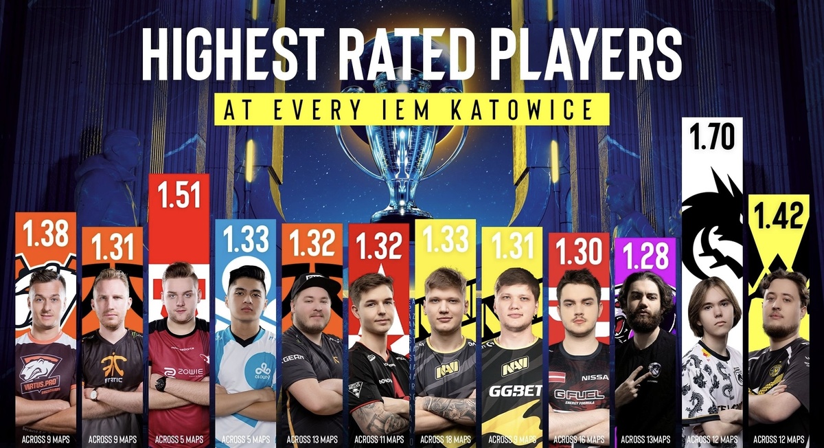Игроки с самым высоким рейтингом в истории Katowice Начиная с 2014 заканчивая 2025