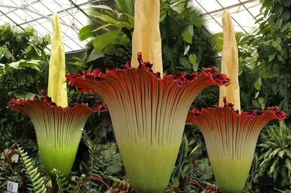 Amorphophallus titanum, известный также как "трупный цветок" или "цветок-монстр", – одно из самых впечатляющих и необычных растений на планете. Его гигантские размеры, отвратительный запах и редкое цветение делают его объектом восхищения и удивления ботаников, садоводов и просто любителей природы. Это растение родом из тропических лесов Суматры, Индонезия, где оно процветает во влажной и тенистой среде. Amorphophallus titanum не является цветком в строгом смысле этого слова. То, что кажется одним огромным цветком, на самом деле является соцветием, состоящим из тысяч мелких мужских и женских цветков, расположенных у основания массивного початка, называемого спадиксом. Спадикс – это центральная вертикальная структура, которая может достигать высоты до 3 метров и более, что делает Amorphophallus titanum обладателем самого высокого неразветвленного соцветия в мире. Вокруг спадикса располагается видоизмененный лист, называемый покрывалом (спатой), который имеет волнистый край и окрашен в те