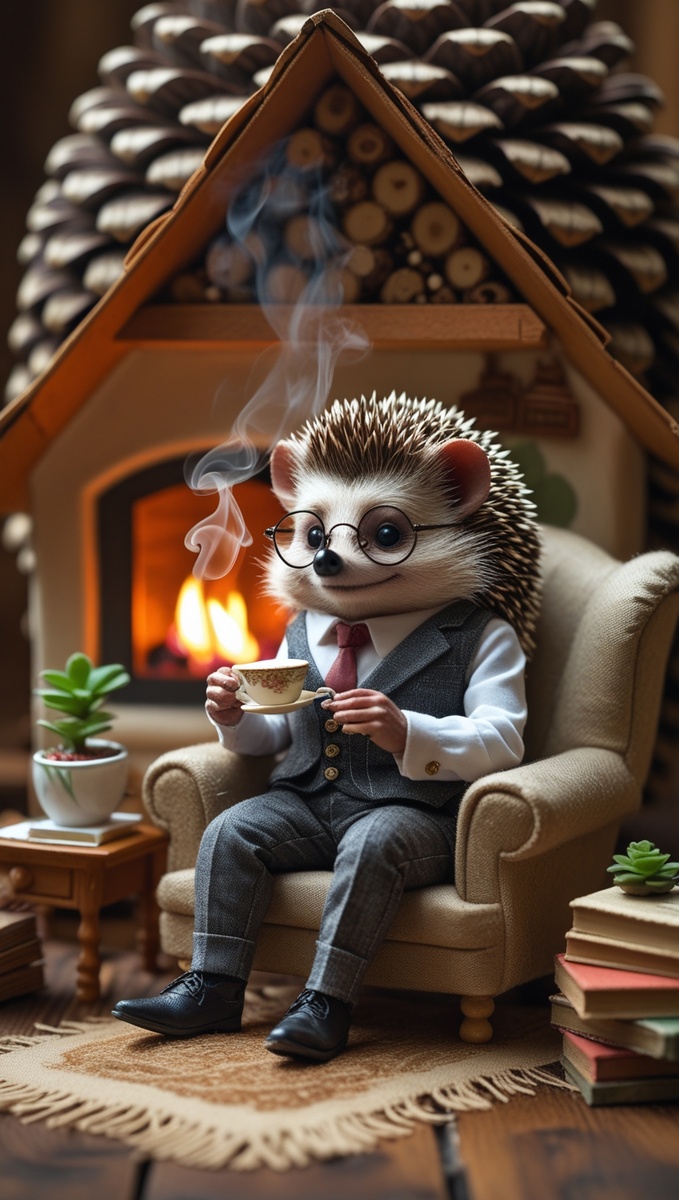 В маленьком лесу, охваченном мягким светом заката, жил Папа Ежик. Его домик, построенный из веточек и мха, уютно располагался под раскидистым дубом. Каждый вечер, когда солнце закатывалось за горизонт, Папа Ежик усаживался в свое старое кресло, обитое красной тканью, и погружался в мир своих воспоминаний, записывая их в толстую тетрадь. Мимо проходили сосны и шептали друг другу о странных событиях, которые происходили в лесу, но Папа Ежик на них не обращал внимания. Он был сосредоточен на своих мемуарах, что были полны приключений — от захватывающих встреч с другими лесными жителями до необъяснимых спасительных акций. Его перо быстро скользило по страницам, оставляя за собой следы сказочных историй. Среди записей был один случай, который всегда заставлял его сердце биться быстрее. Однажды, когда он собирал грибы, он наткнулся на старую заброшенную нору, которая, как говорили, была домом таинственного лесного духа. Нора была обвита мутными лозами, и из нее доносился шепот wind whisp