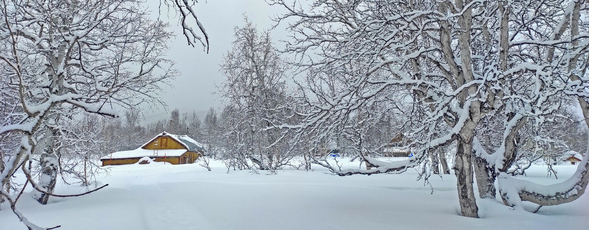 Сугроб перед окном, таявший от тепла из окна все эти дни, растёт на глазах. Раз в час выхожу подметать крыльцо, чтобы не замело дверь. Тропинок нет совсем — одни сугробы кругом. Ощущение, что на кордоне за всю зиму не было людей.