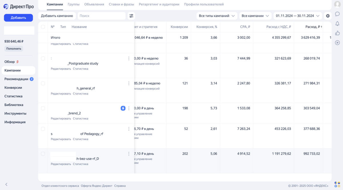 KPI: Окупаемость (измеряем в интервале 3 мес, так как долгий процесс принятия решения) ROMI 100%+, лид до 1000р Так же у нас подключена сквозная аналитика, которая позволяет нам более качественно оптимизировать рекламу Старт: сделав аудит рекламных кампаний, я выявила, что очень плохо чистились поисковые запросы, оптимизация рекламы происходила очень редко, а на таких бюджетах, шлака было достаточно много Поэтому начинаем с оптимизации рекламных кампаний, которые приняли решение оставлять, так как они удовлетворяют нашу стратегию и медиапланирование: После чего на выходе мы получаем оптимизрованные рекламные кампании, что помогает стратегии начать понимать нашу аудиторию лучше. Конечно, это не панацея, и нам нужно дальше продолжать проверять настройки, наблюдать и при необходимости корректировать данные