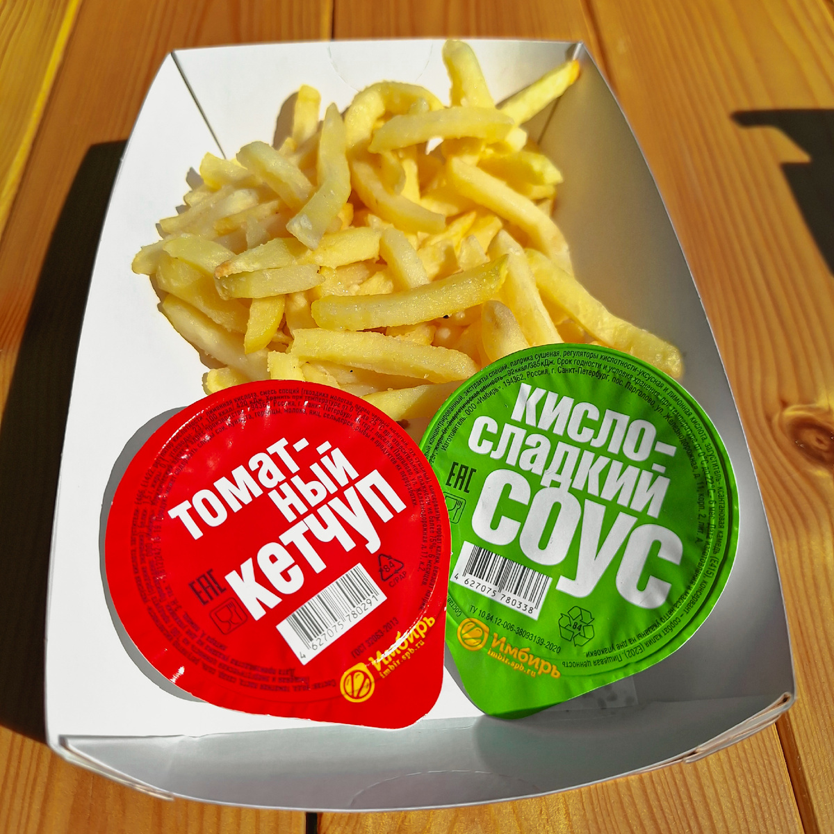 Кетчуп придаёт картошке яркий и аппетитный вид, а кисло-сладкий соус добавляет приятную кислинку и сладость.