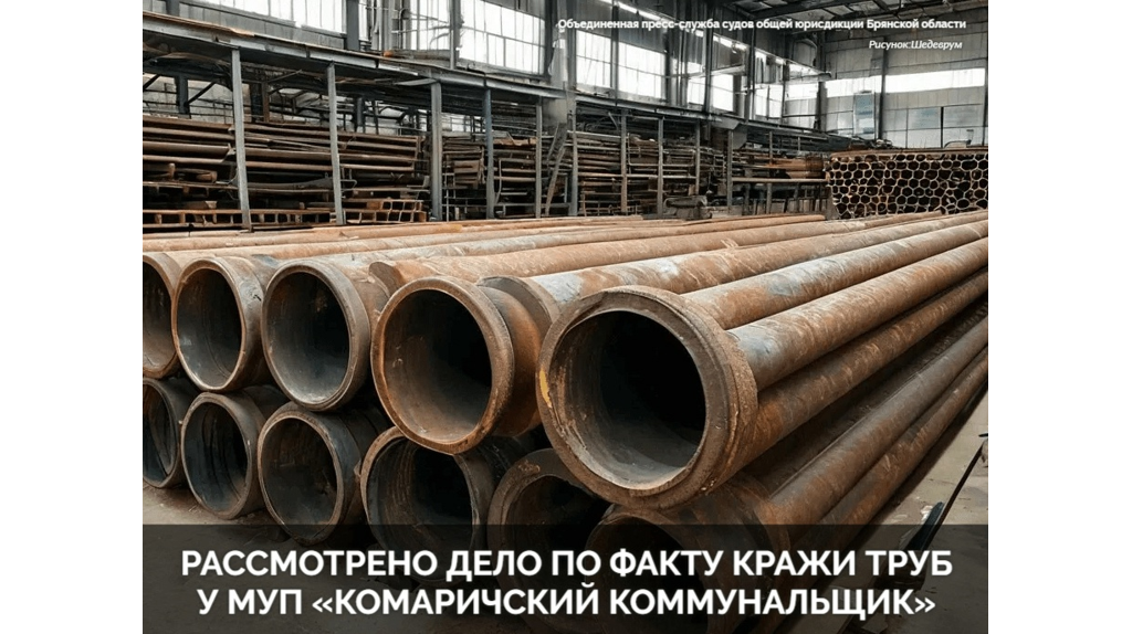 В Комаричах суд вынес приговор по уголовному делу в отношении двух местных жителей. Их признали виновными в краже. Об этом сообщает объединенная пресс-служба судов Брянской области. В июле прошлого года 29-летний фигурант предложил 33-летнему сотруднику МУП «Комаричский коммунальщик» похитить принадлежащие предприятию чугунные трубы. Инициатор кражи организовал транспорт для перевозки добычи. Подельник при помощи неосведомленных знакомых перевез трубы весом 2 885 кг в пункт приема лома. Он получил за них 51 930 рублей. Подсудимые полностью признали вину и раскаялись. 29-летний фигурант непосредственное участие в хищении не принимал, а только предложил совершить преступление, распределив роли участников. Его приговорили к году лишения свободы условно. 33-летний подсудимый, являвшийся непосредственным исполнителем хищения, ущерб возместил в полном объеме. К уголовной ответственности он привлекался впервые. Суд выписал ему штраф в размере 15 тысяч рублей. У «Комаричского коммунальщика» св
