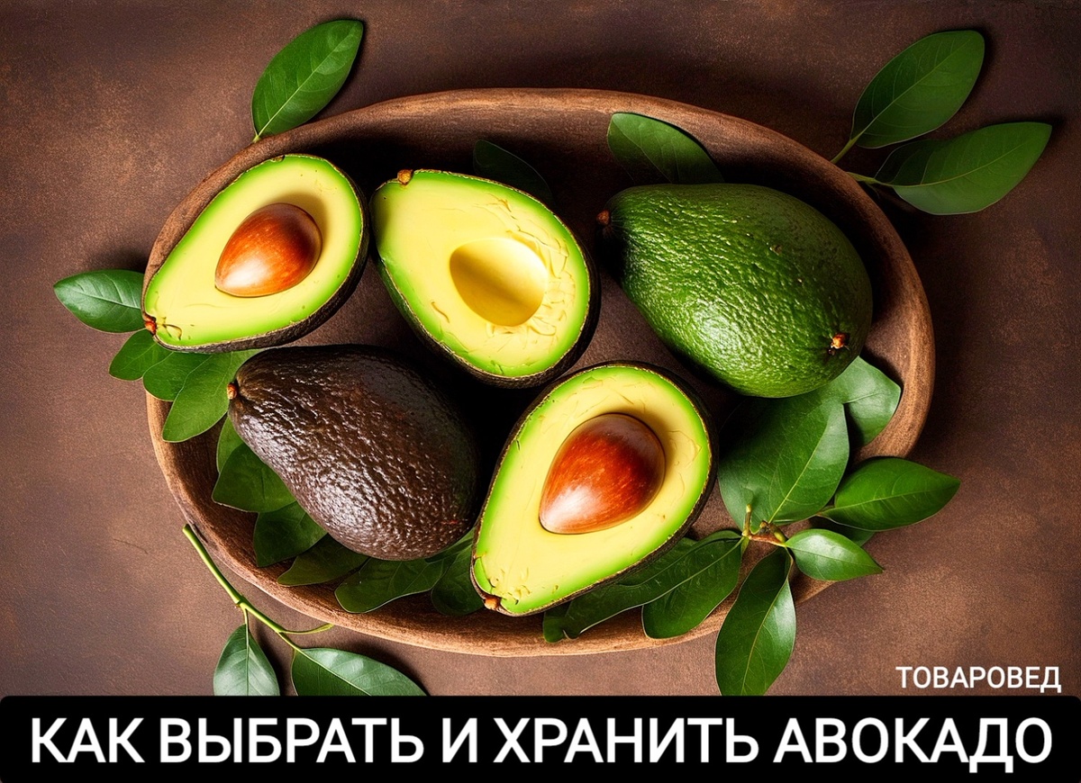 Как выбрать авокадо: 1. Проверьте спелость: - На ощупь: Слегка надавите на плод. Спелый авокадо будет слегка мягким, но не рыхлым. Если твердый — не дозрел, если вмятины остаются — перезрел. - Цвет кожуры: Зависит от сорта. Например, сорт Хасс при созревании становится темно-фиолетовым или почти черным, а Фуэрте или Зутано остаются зелеными. Уточните сорт при покупке. - Черенок: Аккуратно оторвите сухой черенок. Если под ним ярко-зеленый цвет — авокадо спелый, коричневый — перезрелый, желтый — еще не созрел. 2. Выбирайте по планам: - Если нужен сразу — берите мягкие плоды. - Если планируете использовать через 2-3 дня — возьмите более твердые. Как хранить авокадо: - Незрелый авокадо: Храните при комнатной температуре (в бумажном пакете с яблоком или бананом для ускорения созревания). - Спелый авокадо: Положите в холодильник в отделение для овощей. Так он сохранится 2-3 дня. - Разрезанный авокадо: 1. Сбрызните мякоть лимонным соком или уксусом. 2. Плотно заверните в пищевую пленку и