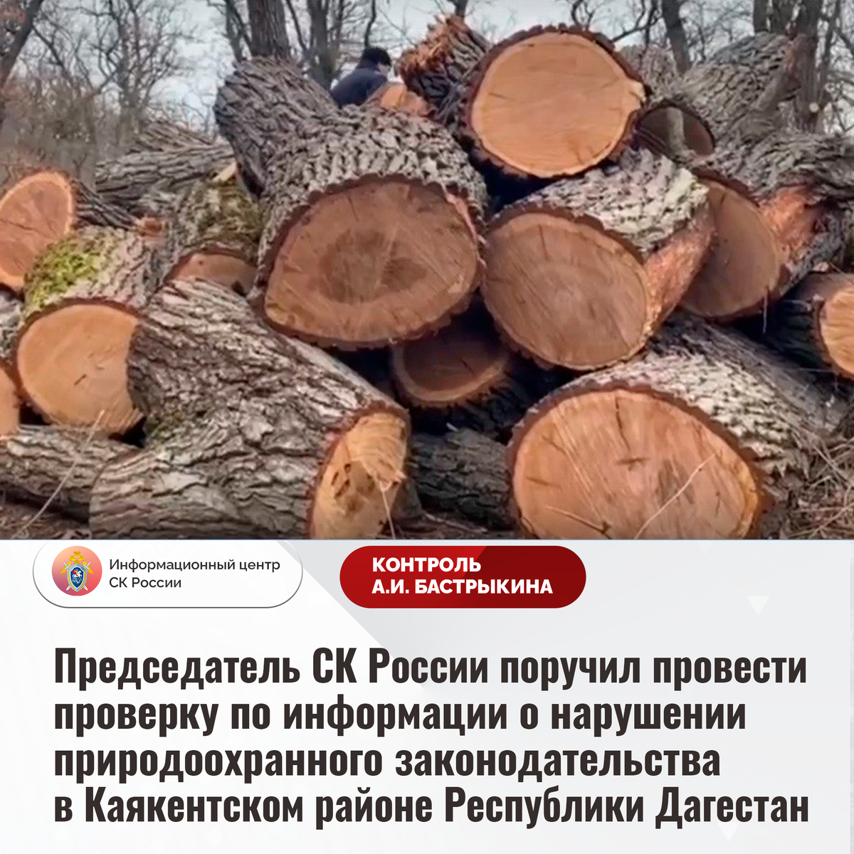 Председатель СК России поручил провести проверку по информации о нарушении природоохранного законодательства в Каякентском районе Республики Дагестан В социальной сети сообщается, что в целях застройки территорий вблизи села Новокаякент в Каякентском районе Республики Дагестан осуществляется массовая вырубка зеленых насаждений, в том числе многовековых дубов. В настоящее время от указанных действий пострадало около пяти гектар лесного фонда. Несмотря на проведение указанных работ без разрешительной документации, сотрудниками компетентных органов мер к привлечению виновных к ответственности не принимается. Председатель Следственного комитета Российской Федерации Александр Иванович Бастрыкин поручил руководителю СУ СК России по Республике Дагестан Дмитрию Владимировичу Беляеву провести процессуальную проверку и доложить об установленных в ходе первоначальных проверочных мероприятий обстоятельствах, а по завершении проверки – о ее результатах. Исполнение поручения, а также ход процессуаль