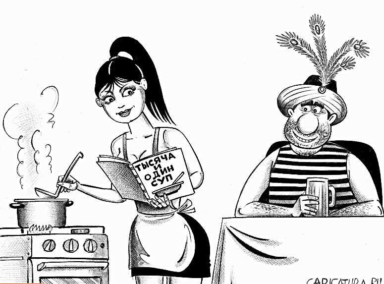 Вот современная Шахерезада, не сказки на ночь своему султану рассказывает, а изучает кулинарию.