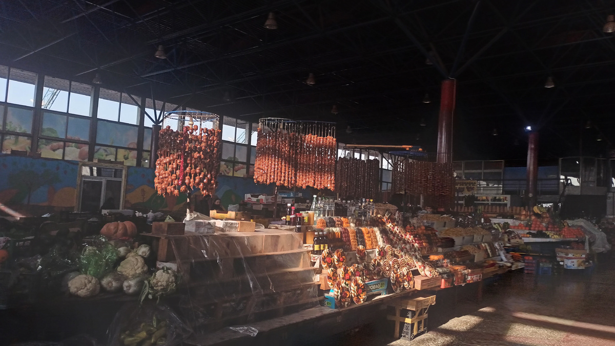 Здесь можно найти сладости, сушёные фрукты, суджук, мясо, сыры, специи и многое другое. Мы отметили, что цены ниже чем в нормальных магазинах (на коробку сладостей уж точно). Продавцы, мягко сказать, отзывчивые: всегда готовы подсказать и дать на пробу, так что с рынка мы ушли сытые.