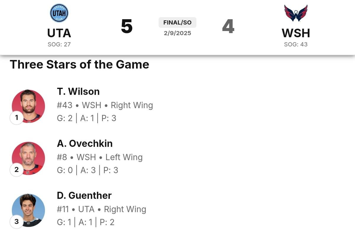 Американцы отреагировали на ассистентский хет-трик Овечкина в матче с «Ютой»