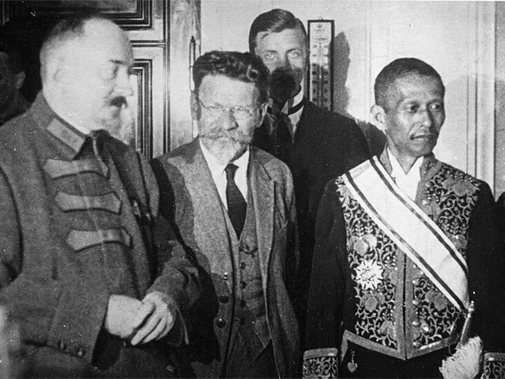Из телеграмм-канала с информацией о Николае Платошкине: На фото ( слева) лучший наш дипломат , народный комиссар иностранных дел СССР тамбовчанин, эрудит, умница Георгий Васильевич Чичерин. Парадной формой для себя считал не фрак и цилиндр, а форму красноармейца. Работал по 16 часов в сутки, знал в совершенстве немецкий,английский, французский и итальянский языки. Играл на музыкальных инструментах, написал работу о творчестве Моцарта. Чичерина очень ценил Ленин. Дворянин Чичерин отдал свое имение под детский дом.