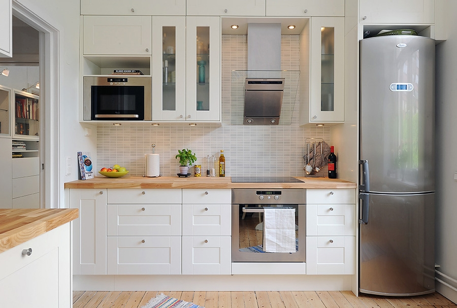 Эти модели скрываются за мебельными фасадами, создавая эффект единого пространства на кухне.