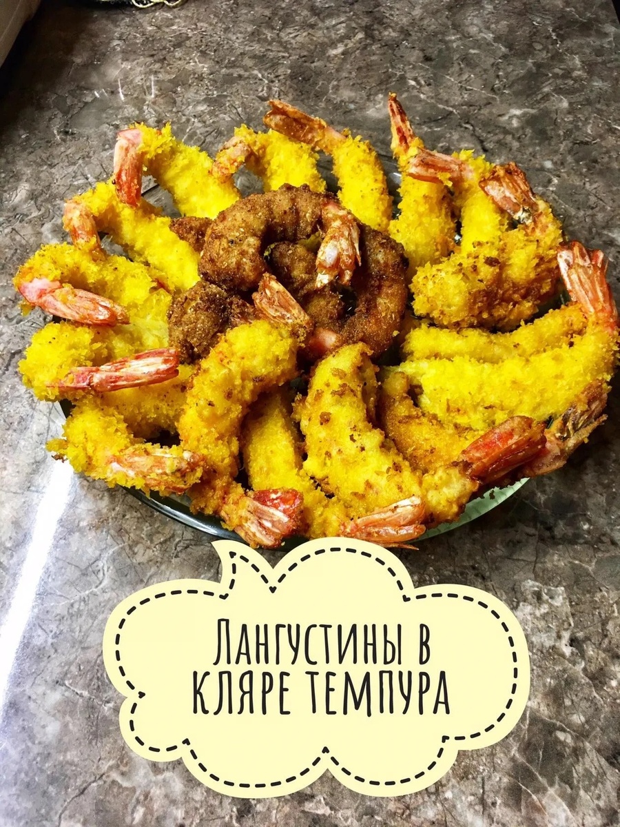 🦐🦐🦐Лангустины в кляре темпура-это ярко и сочно🍤🍤🍤 Для посиделок, на ужин прям замечательный вариант👍🏻👍🏻👍🏻 👩🏻🍳 Ингредиенты: Лангустины - 1 кг Мука - 3 ст.л. Яйцо куриное - 1-2 шт Молоко - 100 мл Растительное масло - 300 мл Сухой специальный кляр для морепродуктов-темпура в хлопьях 👩🏻🍳 Приготовление: 1. Варёно-мороженые лангустины размораживаем, отрываем головы, ножницами разрезаем панцирь до хвоста и очищаем, оставляя хвостик и удаляя спинную кишку зубочисткой и делая надрез вдоль спины. 2. Для кляра в глубокую ёмкость разбиваем 2 куриных яйца, добавляем 100мл молока и 3 столовые ложки муки. Тщательно перемешиваем венчиком. 3. В кастрюлю или сотейник наливаем 300мл растительного масла и ставим на максимальный огонь. Или во фритюрнице. 4. В отдельную тарелку насыпаем хлопья темпура для обжаривания. Лангустины обваливаем сначала в муке, затем обмакиваем в подготовленном кляре, затем в сухарях и жарим в раскалённом масле 2 минуты. Переворачиваем в процессе жарки. Посл