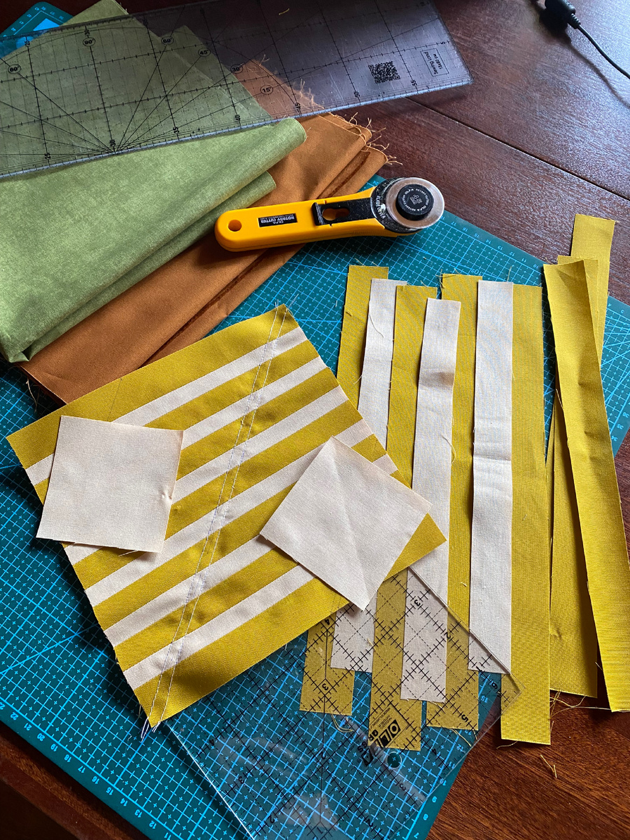 Новый год! Новые проекты и работы. Все еще в процессе. Очень захотелось попробовать сшить в таких красках, больше осенних, хотя зима на самом пике. Семь цветных полосок, шесть фоновых. Шьём 2 квадрата. Разрезаем 1-й квадрат по диагонали в одном направлении, 2-ой квадрат по другим диагоналям. Для стабильности можно проложить наметочную строчку с двух сторон от диагонали, отступая буквально 2-3 мм. Это для того, чтобы косой срез не растянулся. Соединяем получившиеся треугольники в квадрат. По двум противоположным сторонам квадрата пришиваем фоновые квадраты небольшого размера, прокладывая строчку по диагонали. И у нас получаются листочки. Вот такие варианты раскладки. Что будете шить, это вам выбирать! Можно покрывало, или дорожку, а может быть подушки или лоскутное панно?! А у меня получились вот такие интерьерные подушки. Шейте с удовольствием!