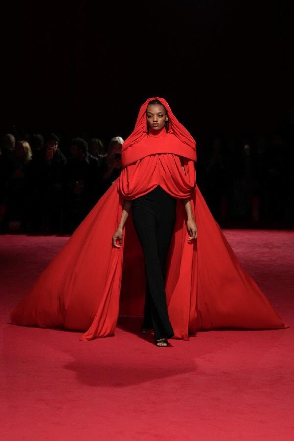 А как тут не плакать?! Мы с вами, маломодные россияне, теперь от мировой модной индустрии напрочь отрезаны, остаётся кусать нестильные локти. И пить боржоми, как известно, поздно! Нам до их уровня - как до Америки пешком за обозом. Короче, сами смотрите, какой шик на Неделе моды в Нью-Йорке показывали! Выбрала для вас самое красивое. CHRISTIAN SIRIANO вон как красные простыни вокруг тётки накрутил! Транспарант, а не тётка! Ишь, какое! Из обычного мусорного пакета такое не сделаешь. Тут инновационные материалы нужны! А бензиновые разводы на пацане как хороши! А бренд Tibi?! Тоже сплошь инновации! До перчаток на резинке допетрили! И теперь можно не худеть! Фигуру стройную на платье нарисовал - готово! В COLLINA STRADA тоже уверены, что худеть не надо! Как вам костюм уверенной Цокотухи? Вот еще какая-то мошка с желтым брюшком: Псинку очень жалко. Если я так наряжусь - меня все встречные холостые мужики будут под руки хватать и в ЗАГС тащить. А женатые - будут в рукав плакать, гляд