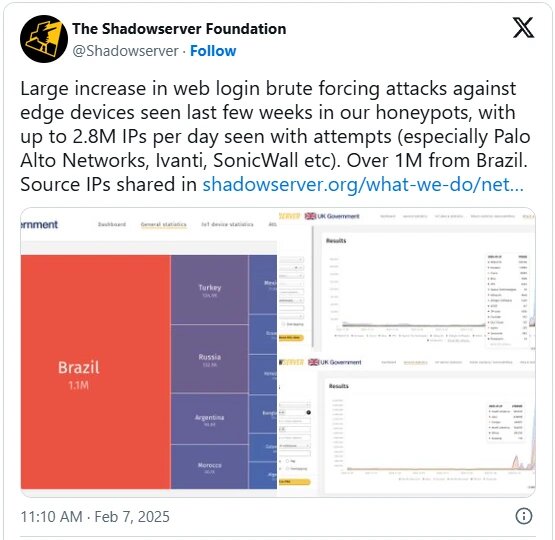 Устройства, на которые совершаются такие атаки, в основном представляют собой маршрутизаторы и IoT-системы MikroTik, Huawei, Cisco, Boa и ZTE, которые обычно взламываются крупными ботнетами вредоносного ПО. The Shadowserver Foundation подтвердила, что эта деятельность ведется уже некоторое время, но в последнее время приобрела гораздо больший размах. ShadowServer также заявила, что атакующие IP-адреса распределены по многим сетям и автономным системам и, скорее всего, являются ботнетом или бытовыми прокси-сетями. Эти прокси маршрутизируют интернет-трафик через потребительские сети, создавая впечатление, что пользователь – обычный домашний пользователь, а не бот, сборщик данных или хакер. Маршрутизаторы, подобные тем, на которые направлена эта деятельность, могут использоваться в качестве выходных узлов прокси в операциях по проксированию в жилых помещениях, направляя вредоносный трафик через корпоративную сеть организации. Шаги по защите пограничных устройств от атак методом перебора в