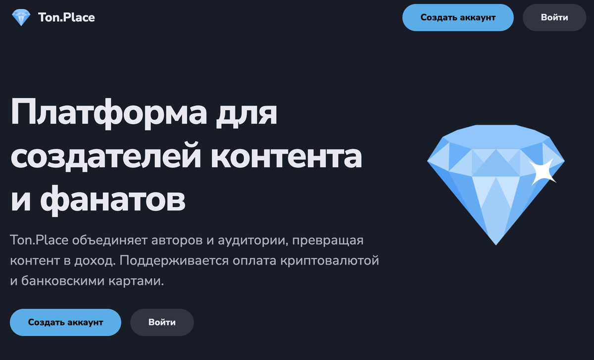 TonPlace — это платформа, которая предоставляет уникальную возможность контент-креаторам зарабатывать деньги, делясь своим уникальным контентом с подписчиками.