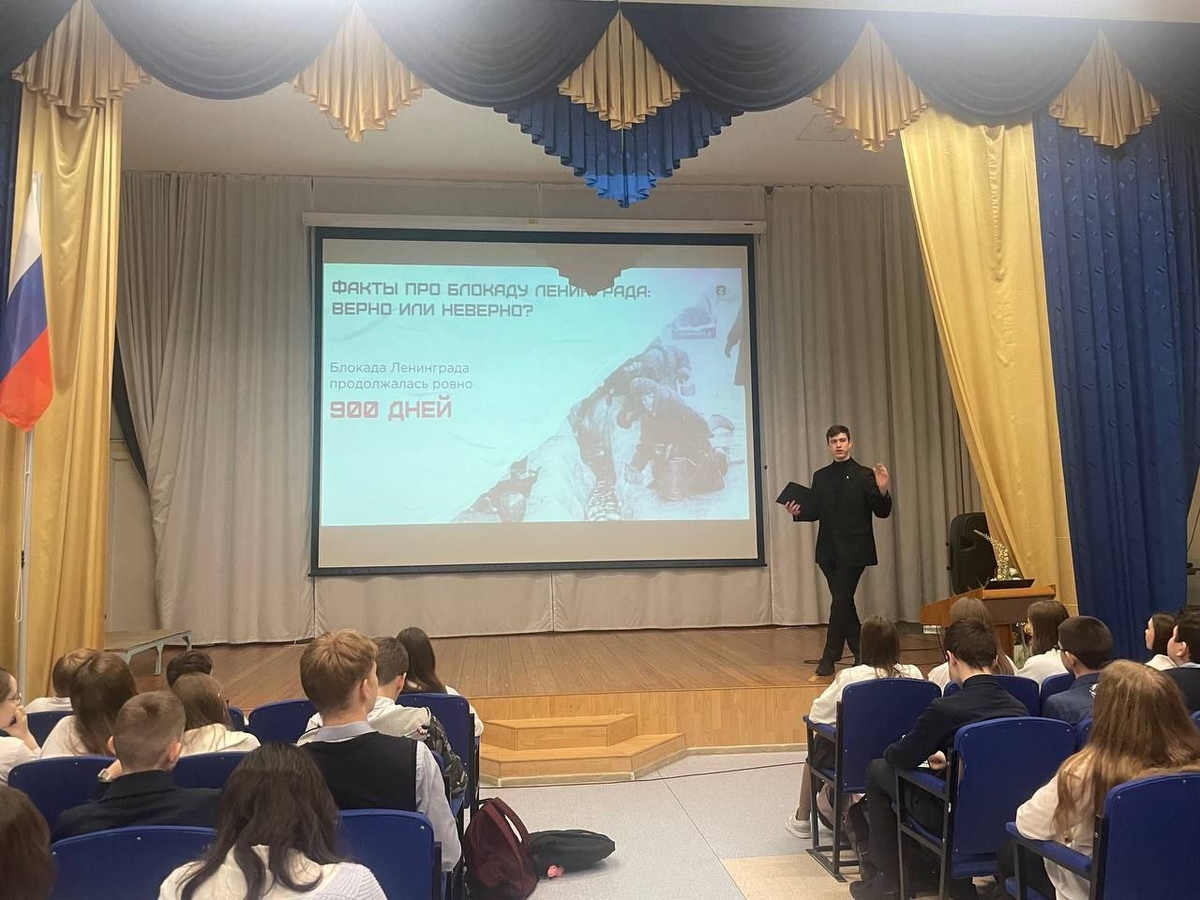 Студент Брит Александр Александрович провел серию просветительских лекций о Блокаде Ленинграда для школьников Сургута С 27 по 30 января студент группы Б-2071 Брит Александр Александрович организовал цикл лекций, посвященных одной из самых трагических страниц истории России — Блокаде Ленинграда. Мероприятия прошли в школах и образовательных центрах Сургута и были приурочены к памятной дате — 27 января, Дню полного освобождения Ленинграда от фашистской блокады. Александр рассказал школьникам о героизме жителей осажденного города, исторических фактах и уроках мужества, а также подчеркнул важность сохранения памяти о событиях Великой Отечественной войны. В рамках своих лекций Александр посетил 5 школ, в которых встретился с учениками 6–9 классов. Там он встретился и рассказал о жизни детей в блокадном Ленинграде, показал архивные фотографии, зачитал отрывки из дневников юных ленинградцев и объяснил, как город выживал в условиях голода и холода. Школьники узнали о «Дороге жизни», норме хлеб