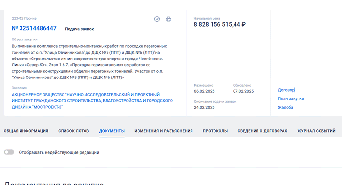 На строительство метротрамвая Челябинска выделили 8,8 млрд рублей, передает корреспондент Агентства новостей «Доступ». Информация размещена на сайте госзакупок. Заказчиком является АО «Научно-исследовательский и проектный институт гражданского строительства, благоустройства и городского дизайна "Моспроект-2"». Заявки принимаются до 24 февраля, подведение итогов закупки назначено на 4 марта. В аукционной документации указано, что победителю закупки ха 8 млрд 828 млн 156,5 тыс. рублей предстоит выполнить комплекс строительно-монтажных работ по проходке правого и левого перегонных тоннелей внешним диаметром 6 метров длиной около 2 км каждый. Подземная линия будет проложена от остановочного пункта «Улица Овчинникова» (в Советском районе, возле железнодорожного вокзала) вдоль улицы Елькина до ее пересечения с улицей Карла Маркса (в Центральном районе, возле площади Революции). Исполнитель должен приступить к выполнению работ с 28 марта 2025 года и завершить их до 3 декабря 2026 года. Ранее