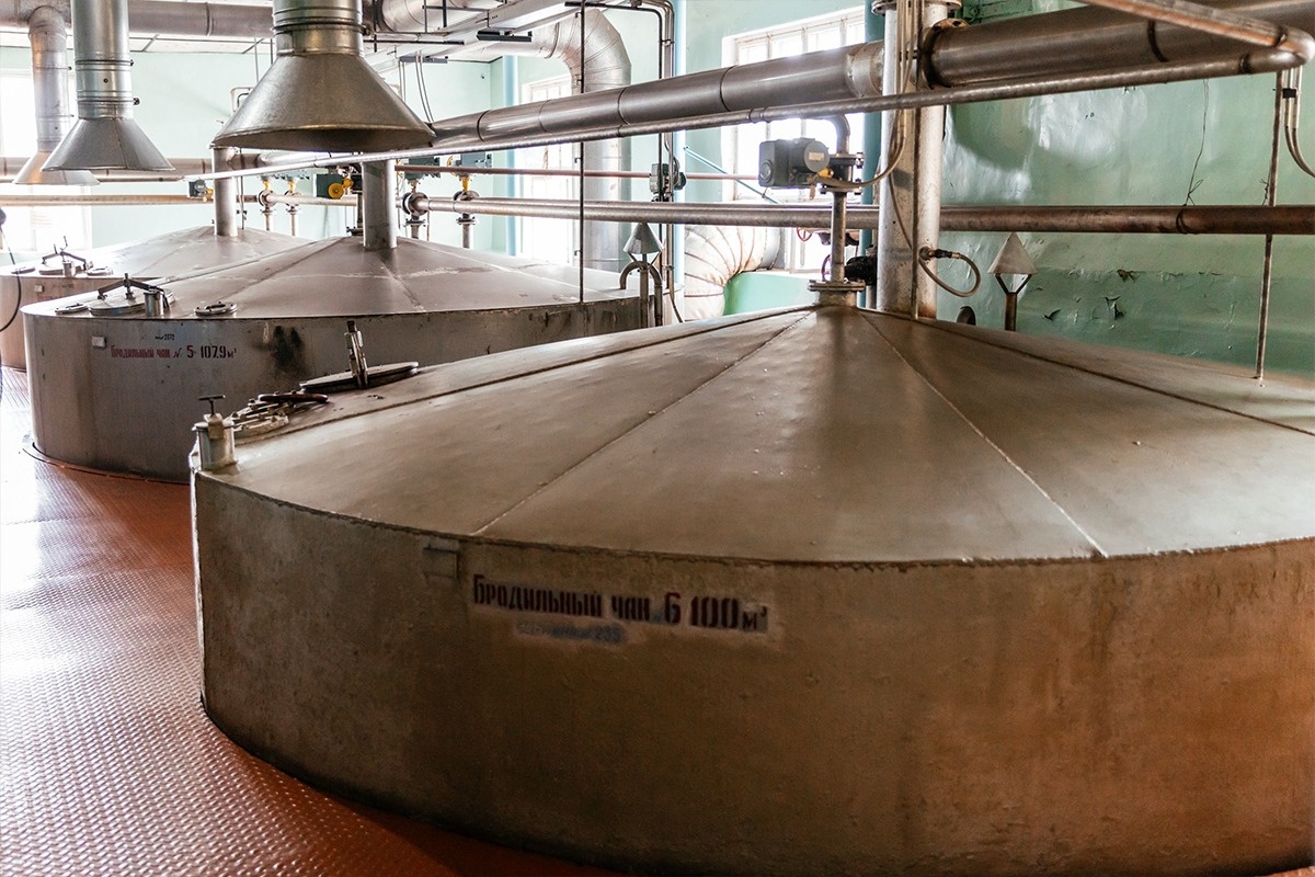 Все процессы производства спирта важны, но, наверное, самый увлекательный из них – это ферментация, когда под воздействием дрожжей сахар превращается в спирт. На Иткуле идет особая подготовка к этому процессу. Лучшая озимая пшеница и рожь развариваются в варочных колоннах в течение 40-50 минут, чтобы высвободить как можно больше крахмала. После охлаждения к ним добавляют солодовое молочко, оно поможет крахмалу превратиться сахар. Полученное таким образом сусло поступает в бродильное отделение. Натуральная ферментация занимает 3 суток, где при контролируемой температуре сусло проходит через три этапа: В итоге получается бражка с содержанием спирта 7-9%, из которой мы после получим наш натуральный солодовый спирт.
